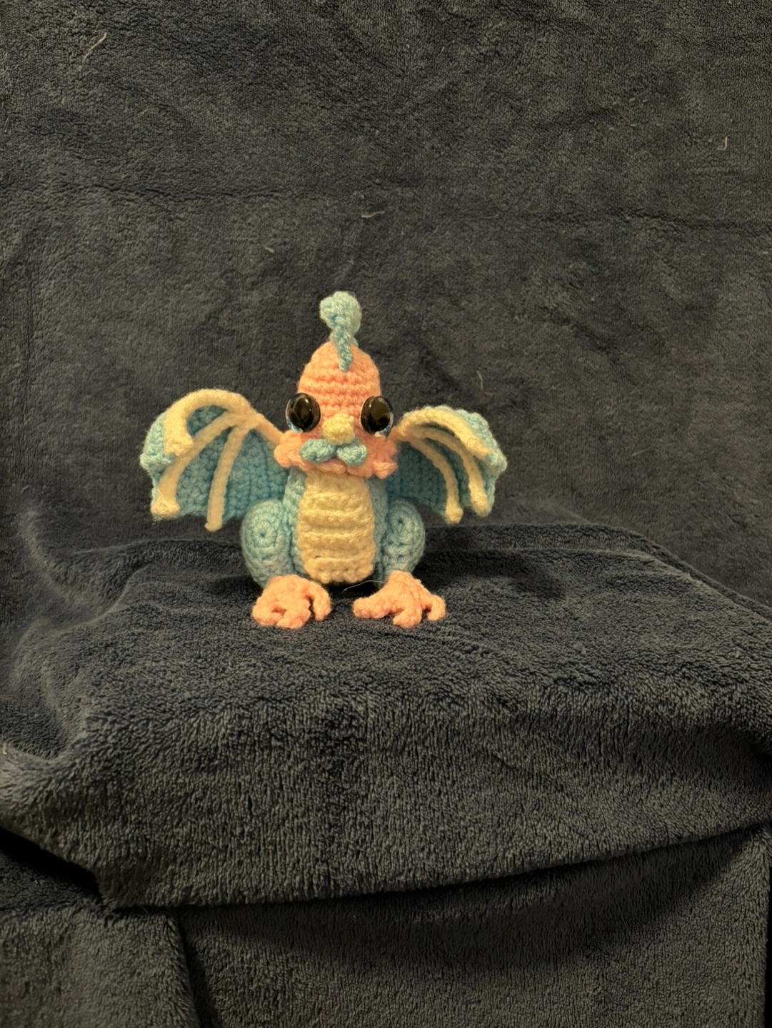 Unique crocheted chicken/dragon. Small size, pastel colours. Perfect gift or collectible.