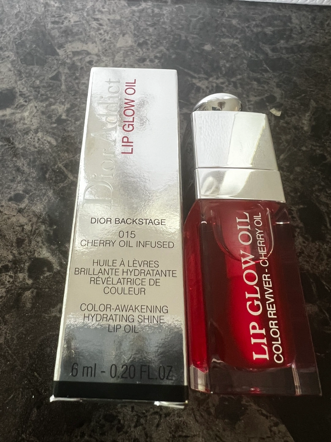 Brand New. Never used nor swatched. Dior Lip Glow Oil in shade 015 Cherry. Non-greasy nor tacky super luxuriously glossy and hydrating shine lip oil. Full size 6 ml. Pick up only from Yorkdale or Scarborough Town Centre. Tags: DIOR, lip oil, luxury, brand new lip oil