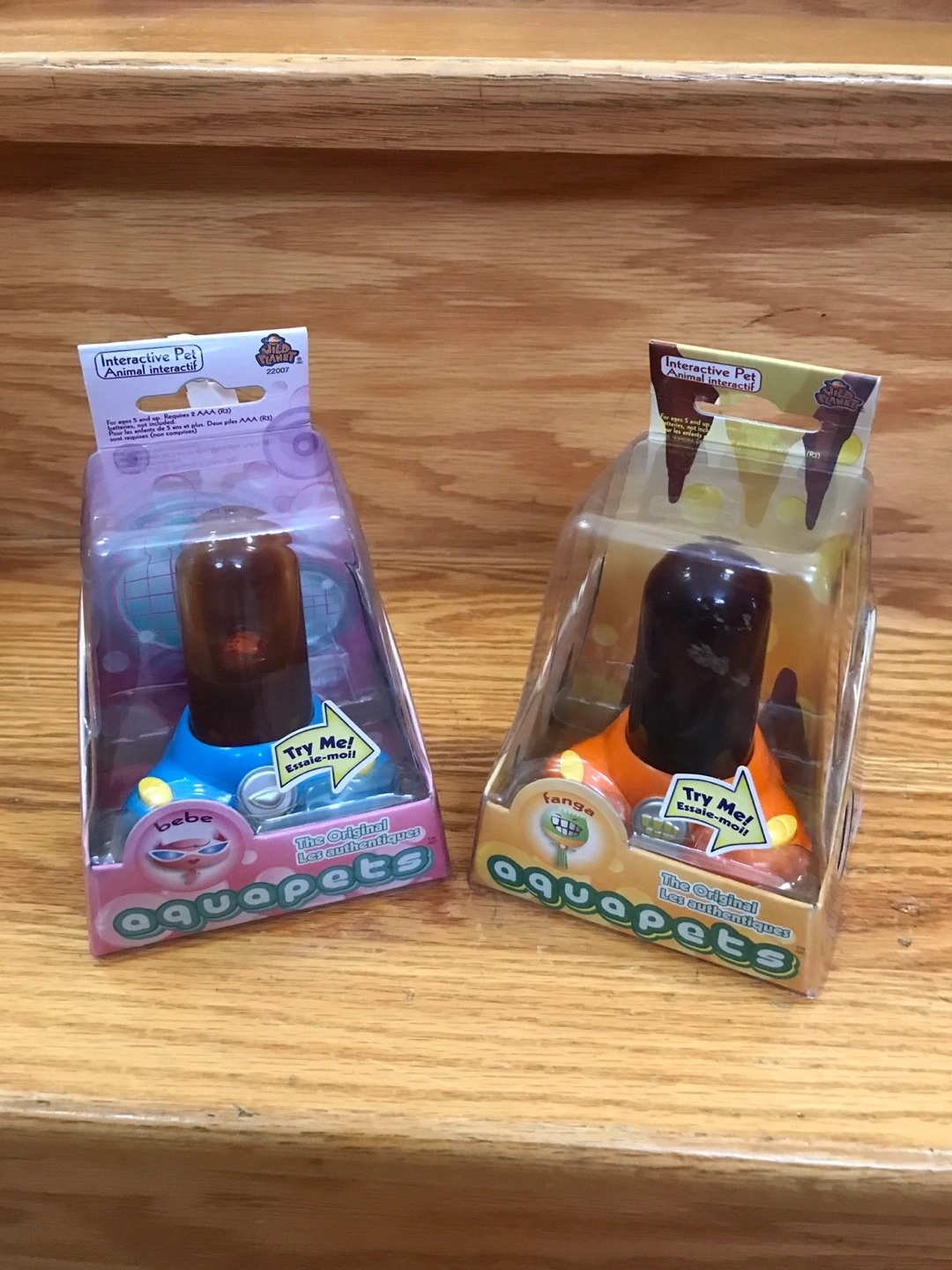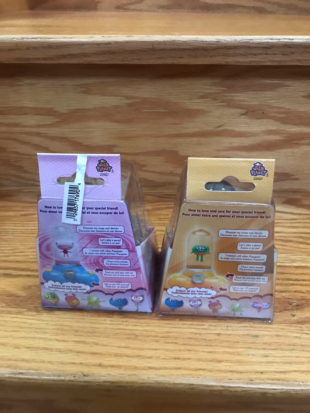 Two sealed Aquapets, one pink and one orange. Interactive pets in individual packaging. Collect them all! Released in October 2004, they respond to sounds β¦ including other Aquapets. Retired and hard to find. Both available for the low low price of $10 π