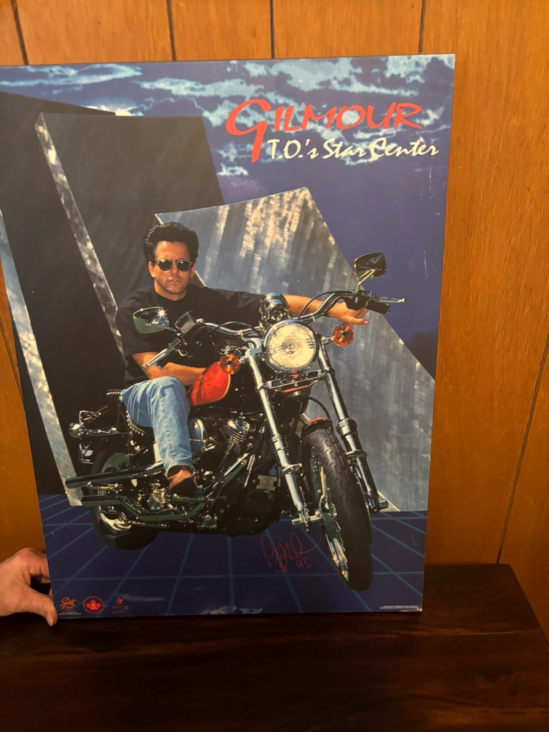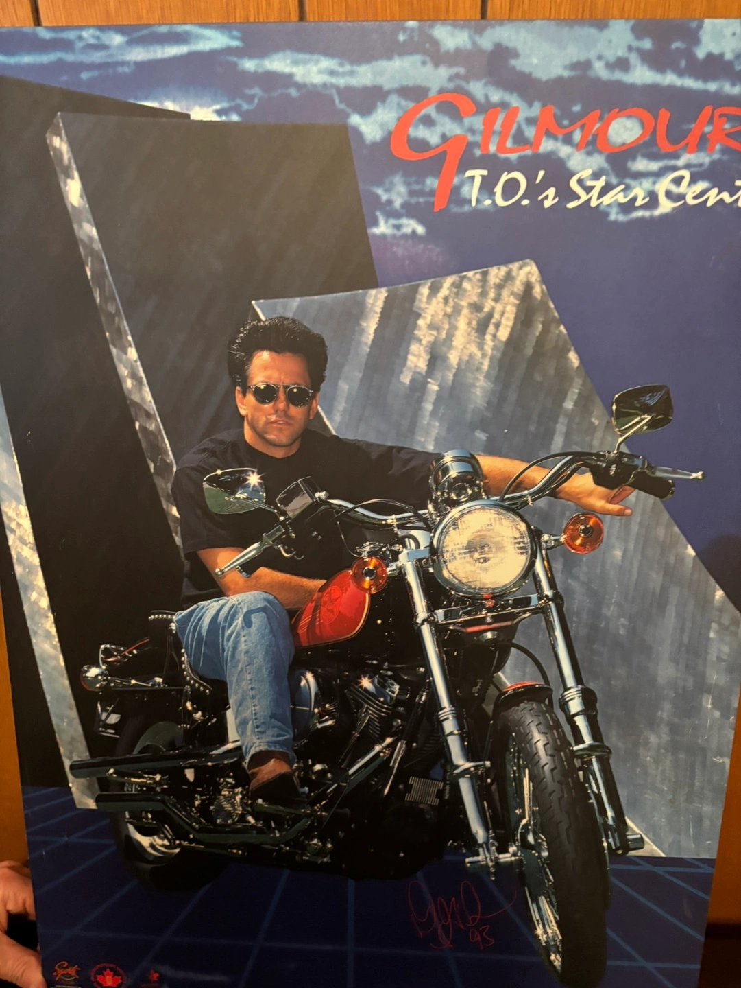 Vintage poster featuring Gilmour hockey player … autographed 1993 From a show at Toronto's Star Center. Excellent condition.