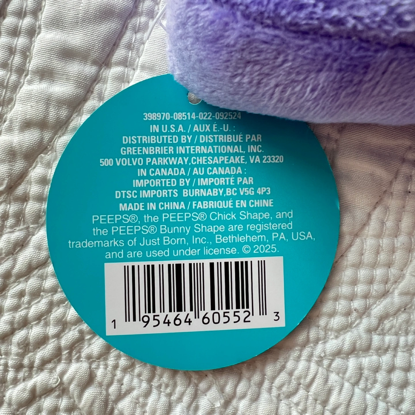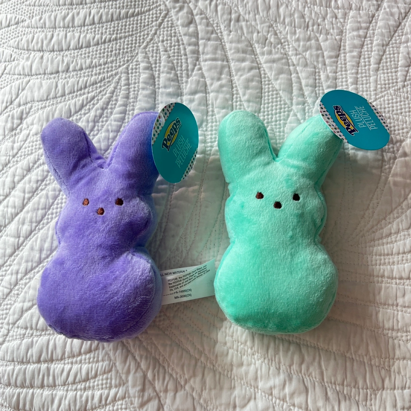 Adorable purple and mint Peeps plush bunny. Soft and cuddly. Perfect Easter gift or collectible. New with tag. ✨Smoke-free, cat loving home. 📍Pick up at Queen’s Quay W. (Waterfront) ♻️ Downsizing! Groceries, cleaning supplies, plants preferred, but will check your listings for trade 😊 🎀Check my other listings, bundle and save.