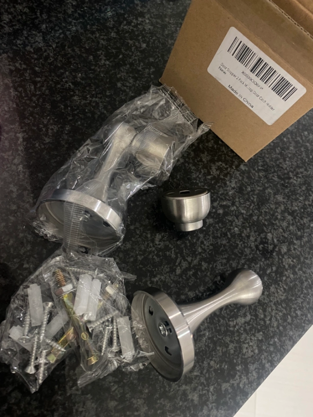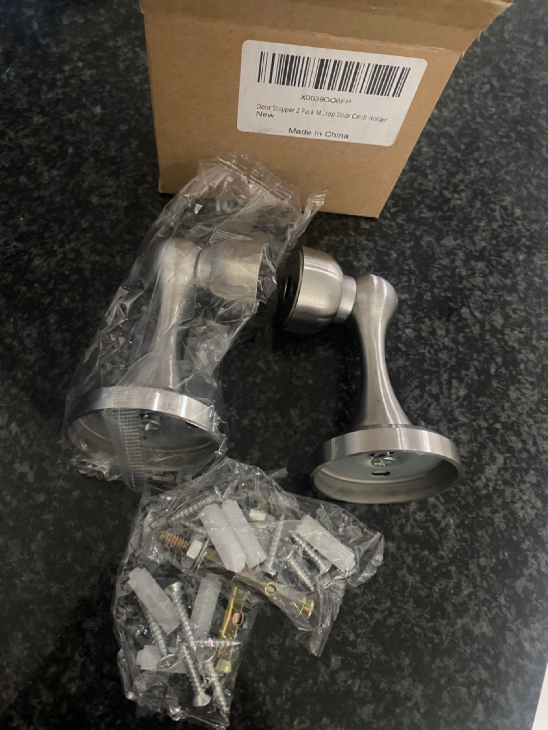 Stainless steel door stoppers. Heavy duty. Wall or floor mount. Includes screws. Strong magnetic hold. Keeps doors open silently. BRAND NEW IN BOX Pick up Richmond Hill