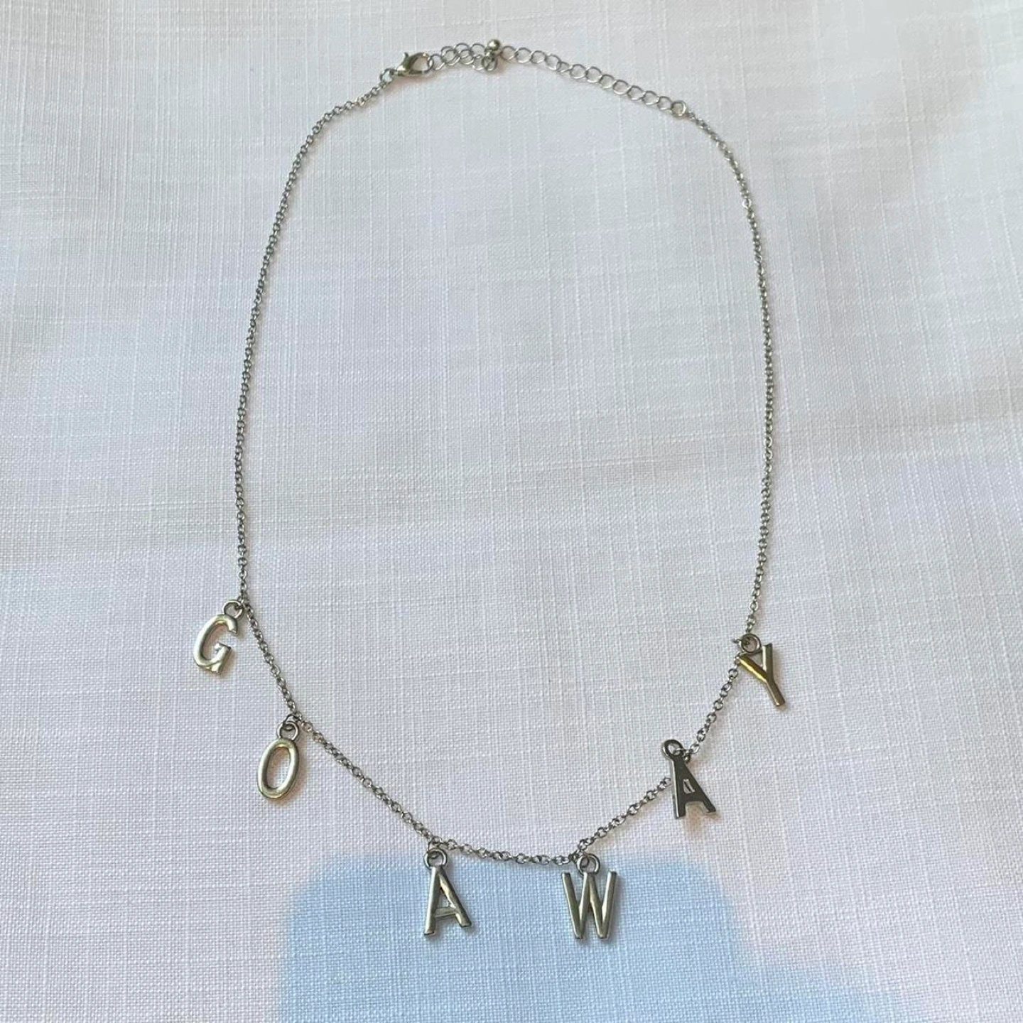 hot topic “go away” letter necklace never been worn! bought a long time ago and completely forgot about it lol :( 16" long with 3" extender” pickup by long branch go or eaton centre + union fridays! will ship untracked for free as well:)