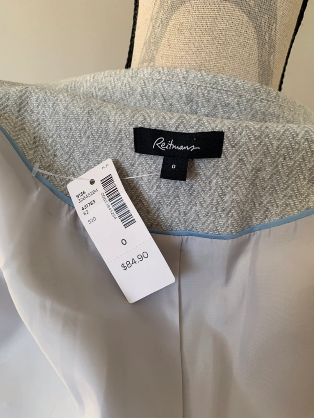 Reitmans women’s grey blazer with a herringbone pattern. The insIde is fully lined. Brand new with tag. Originally $84.90 Asking for $55 only! Size: 0 Brand: Reitmans From smoke-free, pet-free home. Pickup in Millwoods. Cash only upon pickup! Check my other posts :)