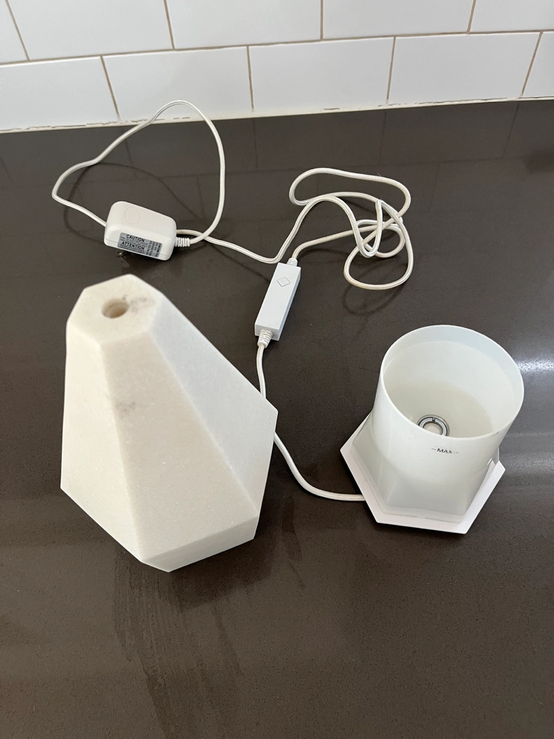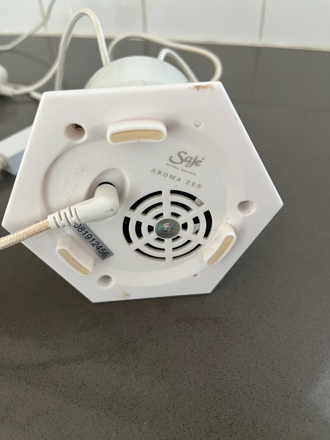 Cream in colour geometric diffuser. Includes power cord and control. Gently used, excellent condition.