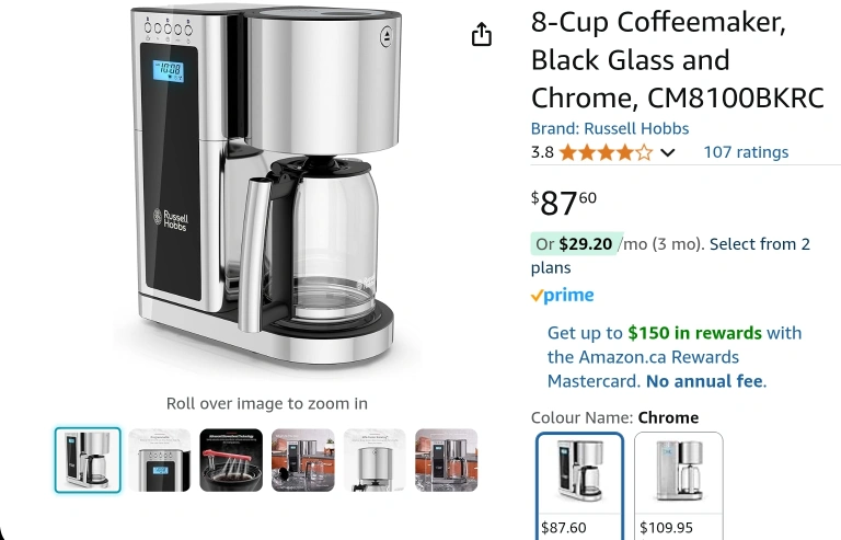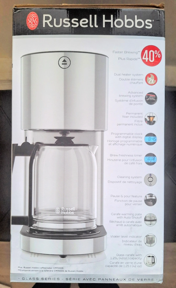 Brand new in box Pickup near Kipling-Steeles Price is firm 8-cup coffee maker. Chrome and glass design. Programmable clock and timer. Features auto shutoff. Includes permanent filter. Faster brewing.