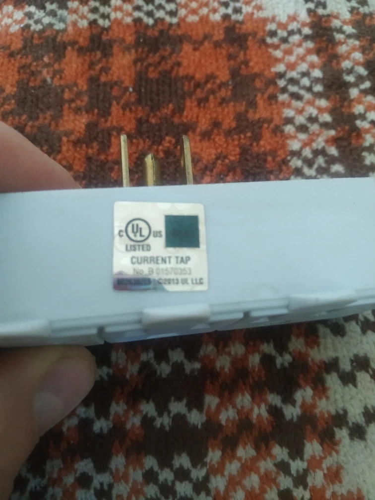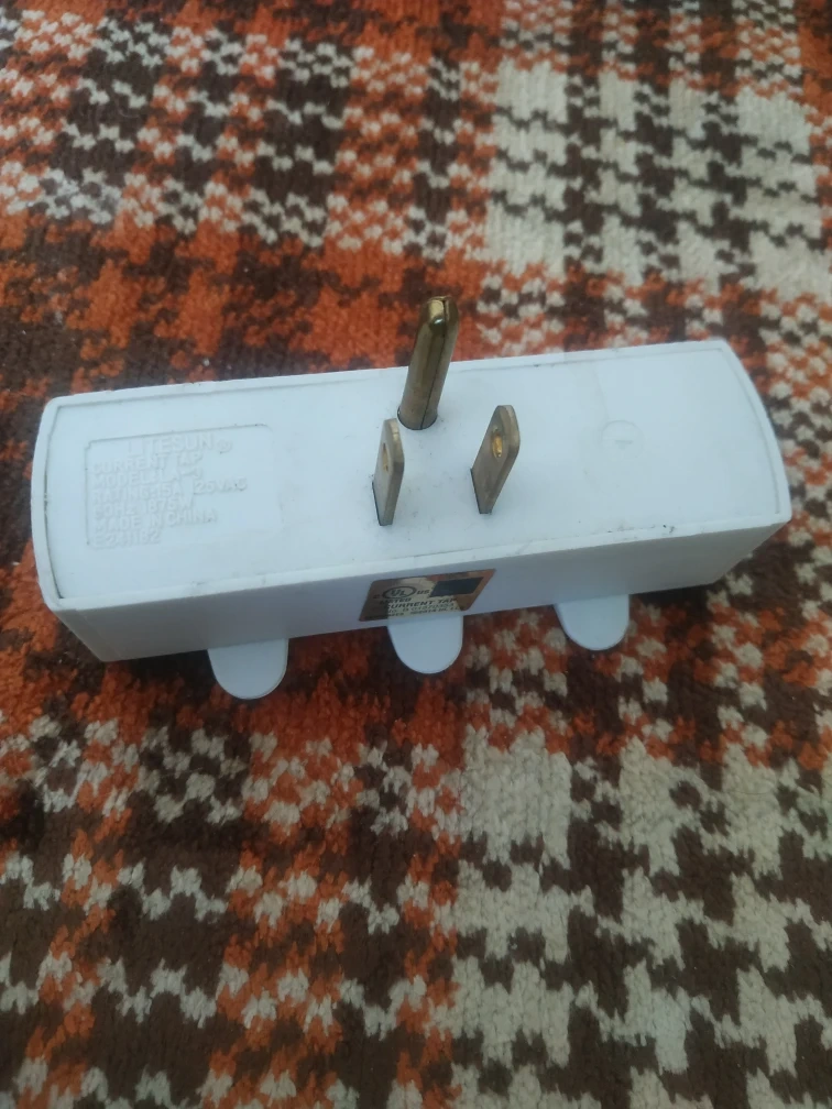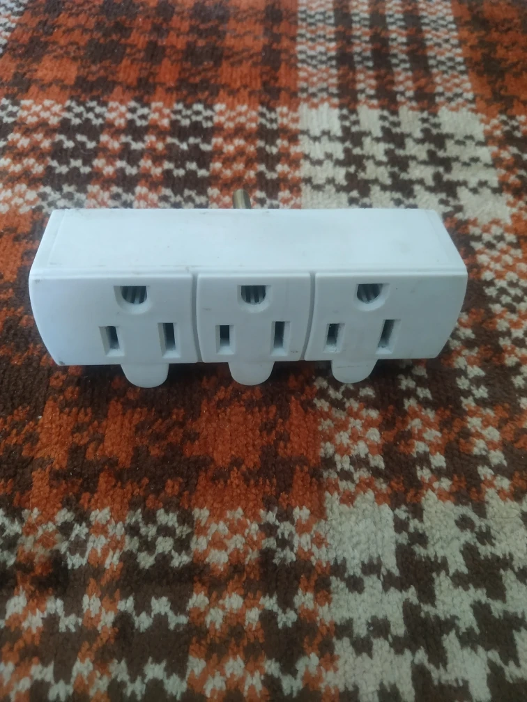 White plastic three outlet electrical adapter. UL listed. Good for expanding outlets.