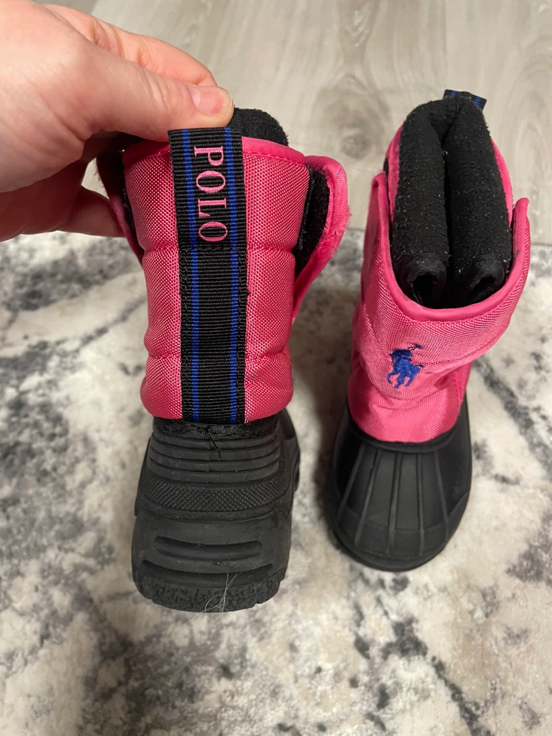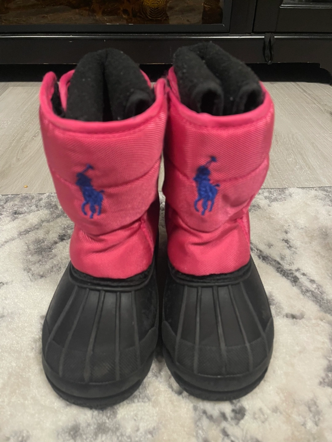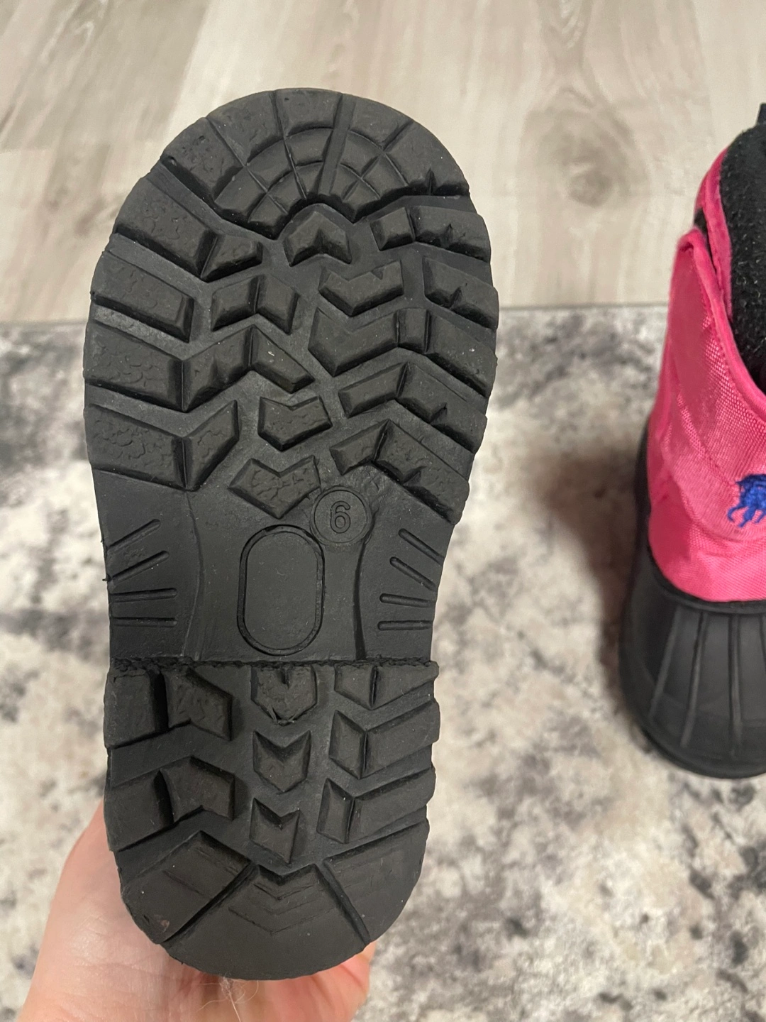 Adorable pink snow boots. Great for winter. Size 6. Black rubber sole. Warm fleece lining.