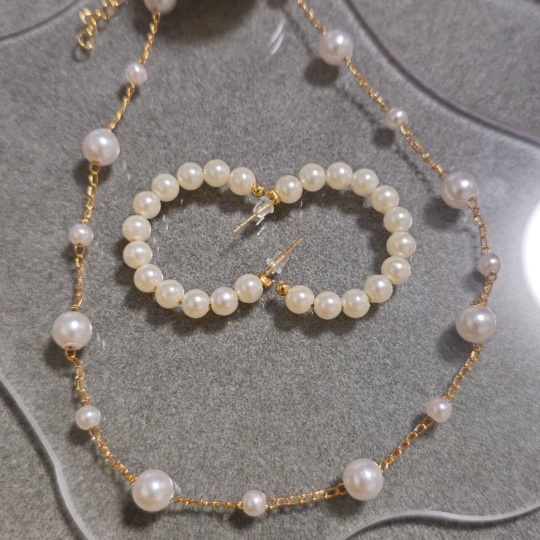 Elegant pearl necklace and earring set. Gold chain accents. Faux pearls. Perfect for a special occasion. ‼️CASH ONLY, PICKUP REQUIRED‼️