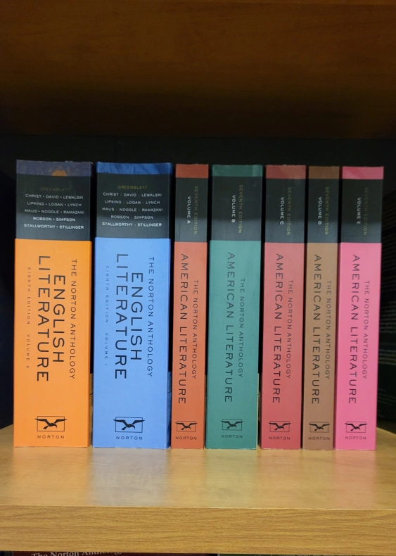 All books are NEW. $30/ each The Norton Anthology English Literature Volume 1: $30 Volume 2: $30 ------------------------------------------------ The Norton Anthology of American Literature by Nina Baym Volume A - beginnings to 1820 : $30 Volume B - 1820-1865 : $30 Volume C - 1865-1914 : $30 Volume D - 1914-1945 : $30 Volume E - SINCE 1945 : $30
