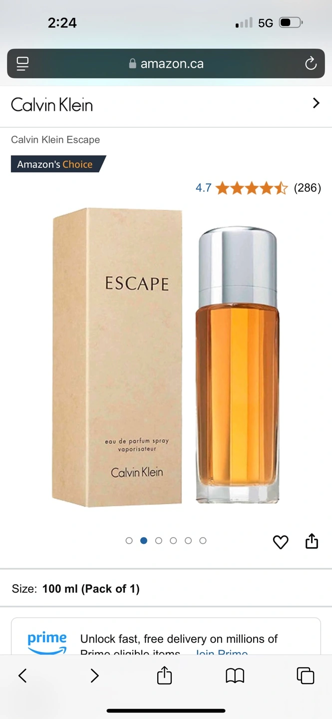 100ml bottle of Calvin Klein Escape perfume. Eau de parfum spray. New sealed