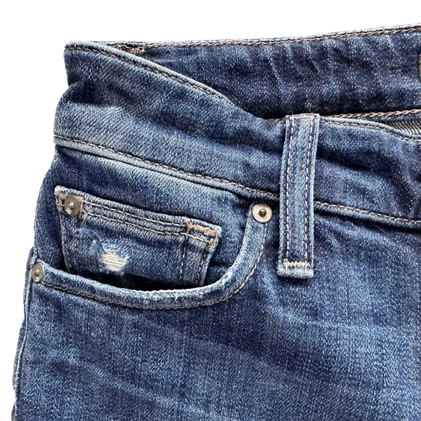 Dark wash skinny jeans. Minor distressing. Excellent condition.
