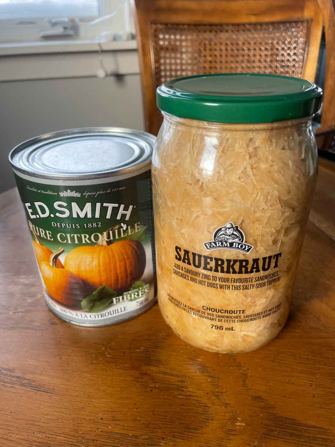 Can of ED Smith pure pumpkin puree and jar of Farm Boy sauerkraut. Both 796 ml. So transparency. Both these items have expired. Does anyone know what I can do to them instead of throwing them in the garbage? Can someone re purpose these? Heavy pantry de cluttering happening here and feel bad about the waste :(
