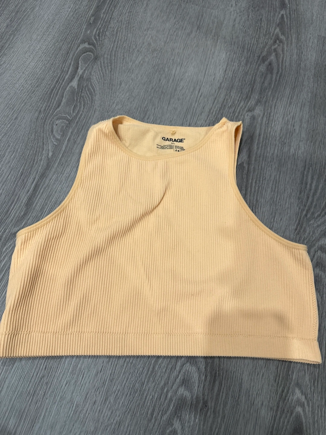 Pale yellow ribbed tank top. Sleeveless. Good for layering or wearing alone. Simple and stylish. Worn once great quality.