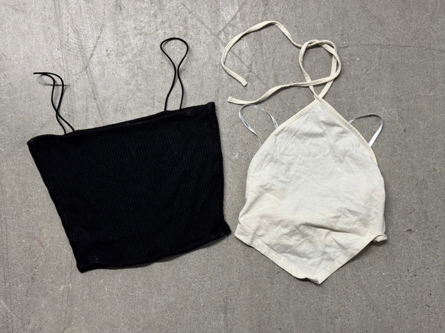 In good overall condition! Great for clubbing/raving this summer ;) includes black ribbed tank and white halter with adjustable strap. Take both for $5. Price is firm, cash only please. Pickup downtown Toronto/Jarvis & Gerrard or we can arrange to meet along TTC line 1.