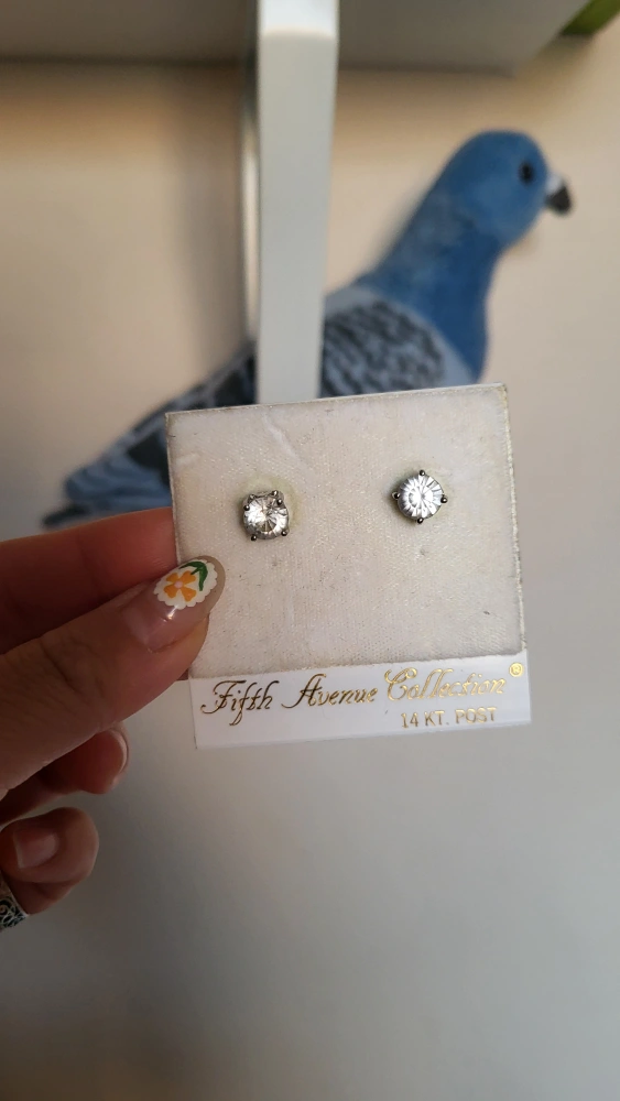Pair of sparkly earrings. Cubic zirconia stones. 14k gold posts. Comes on original card. Meet up at St. James Community Centre (Sherbourne and Wellesley)