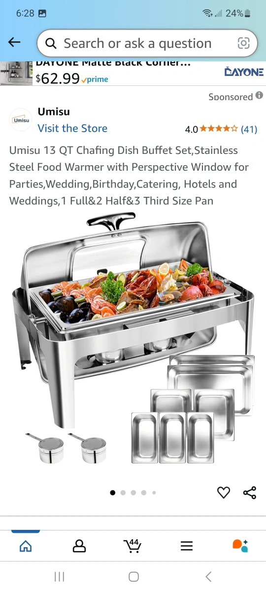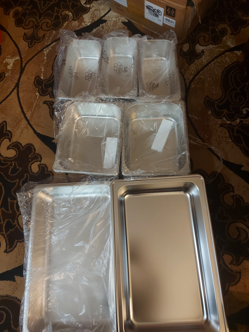 Stainless steel chafing dish buffet set. Includes food warmer with perspective window. Ideal for parties, weddings, catering, hotels. Set includes one full, two half, and three third size pans. Adjustable lid.