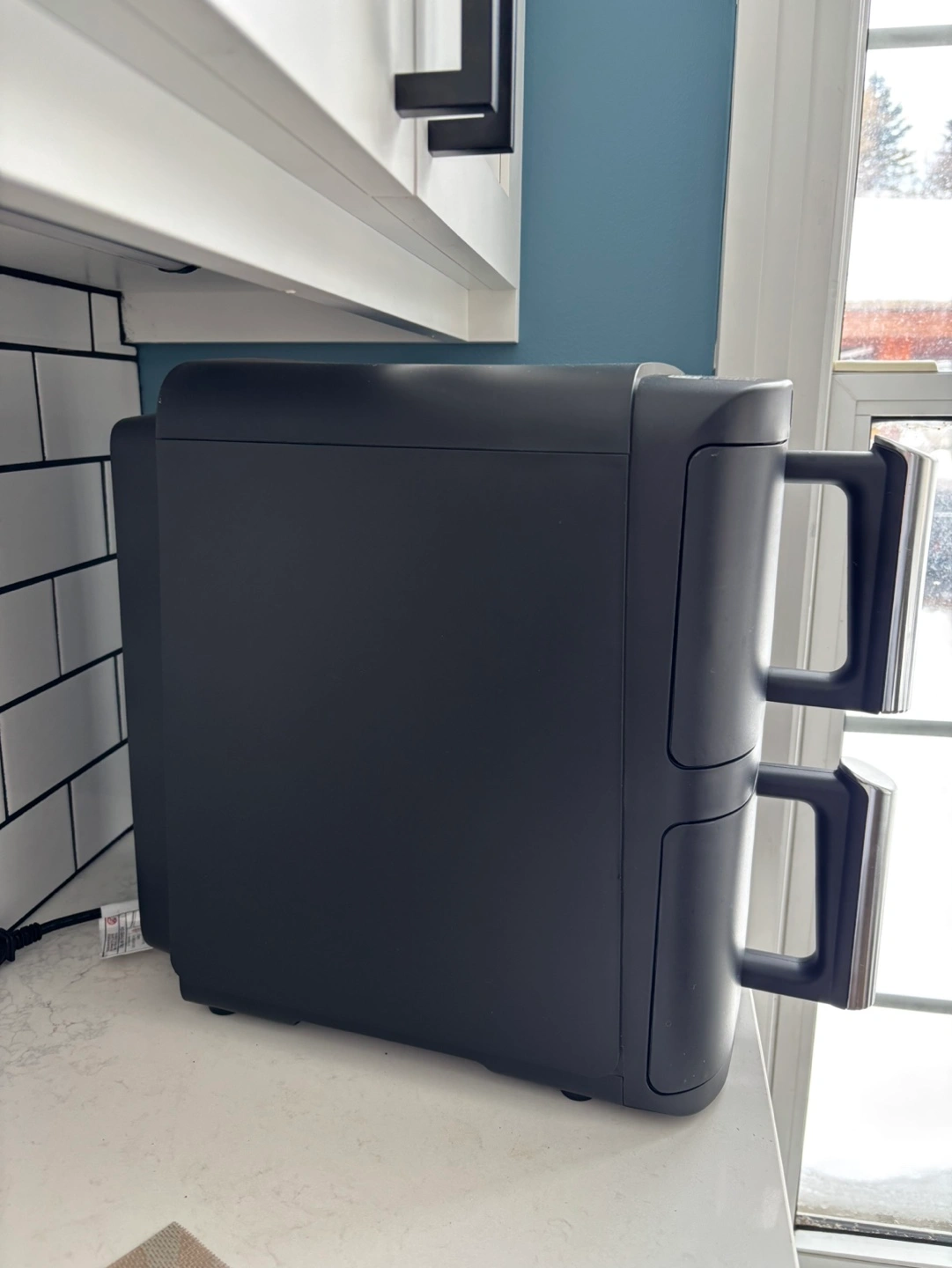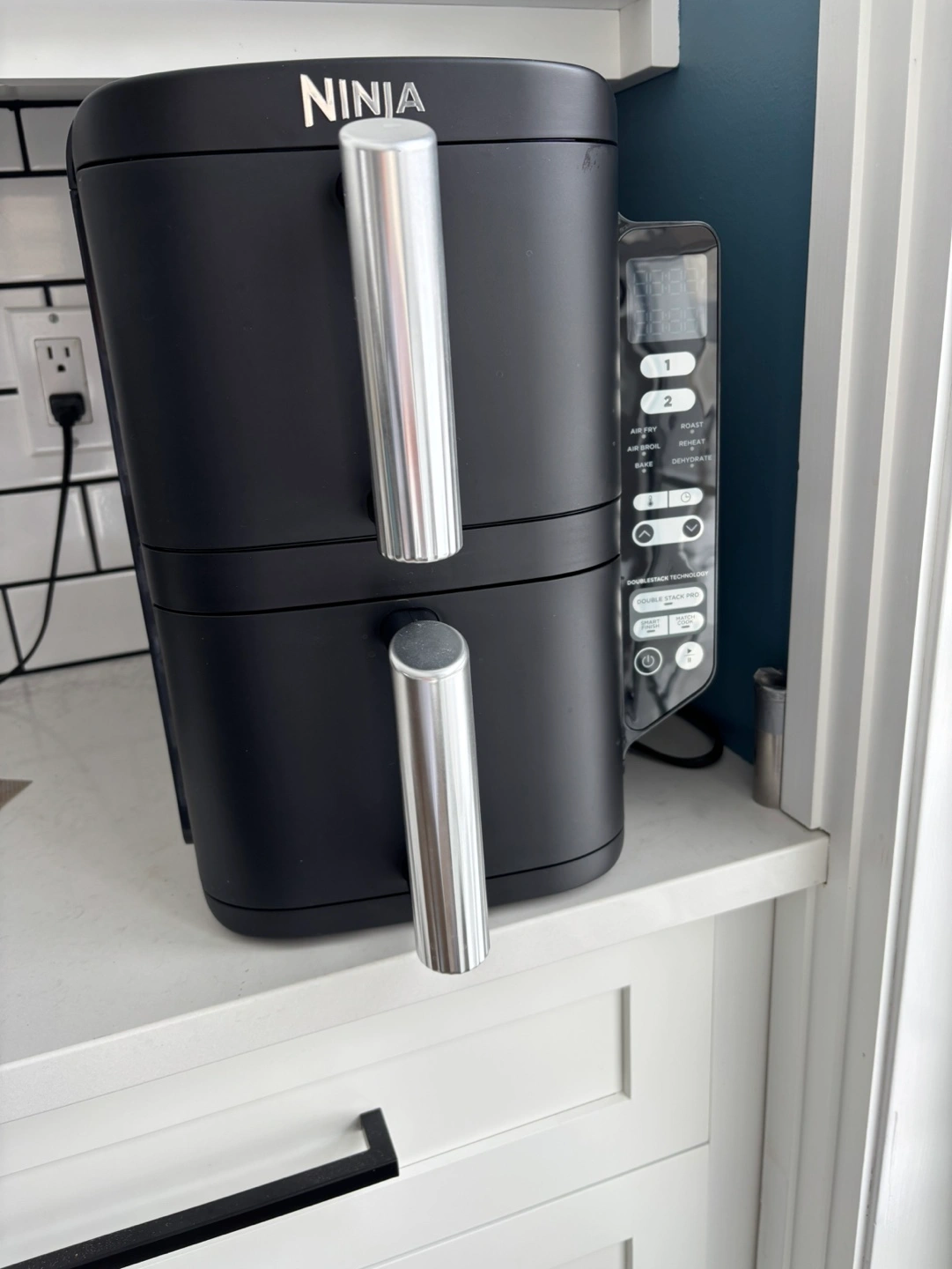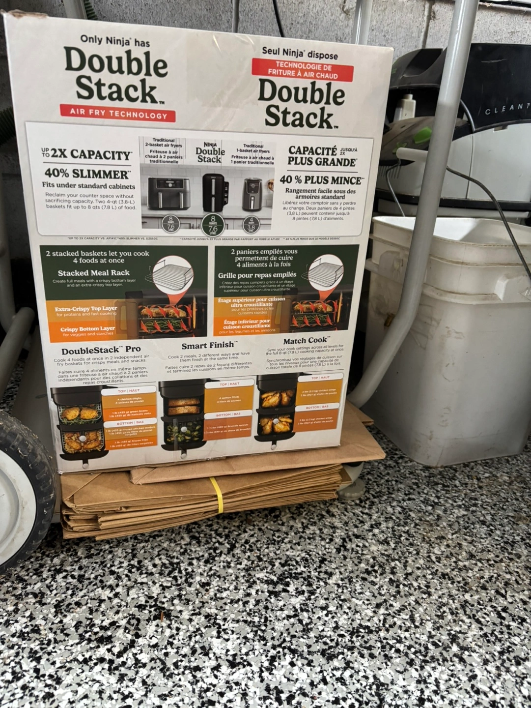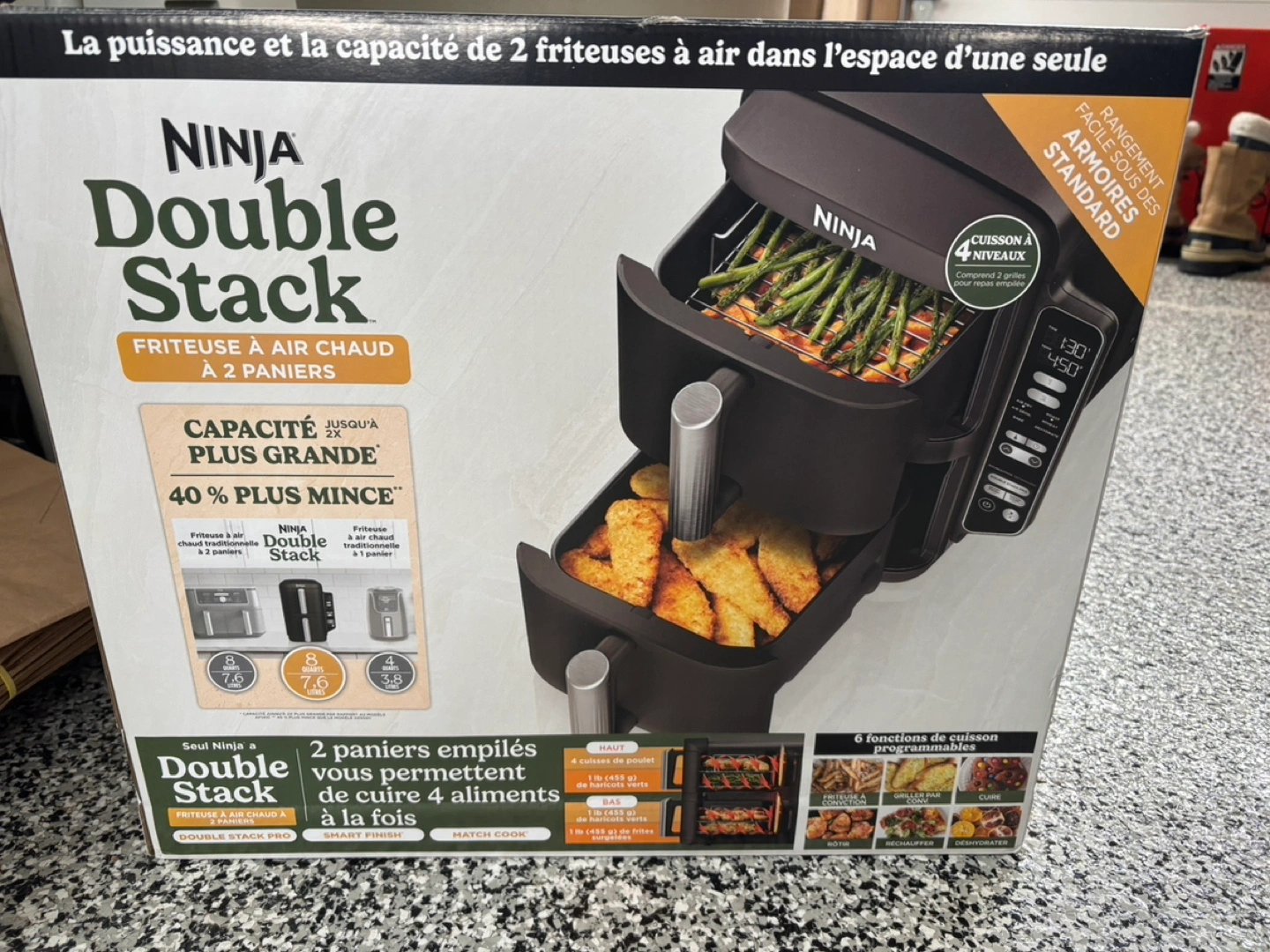 Double Stack air fryer. Two baskets. Cooks four foods at once. Space saving design. Brand new. Never used. Have the box. Wrong colour for my kitchen. Retail price $280