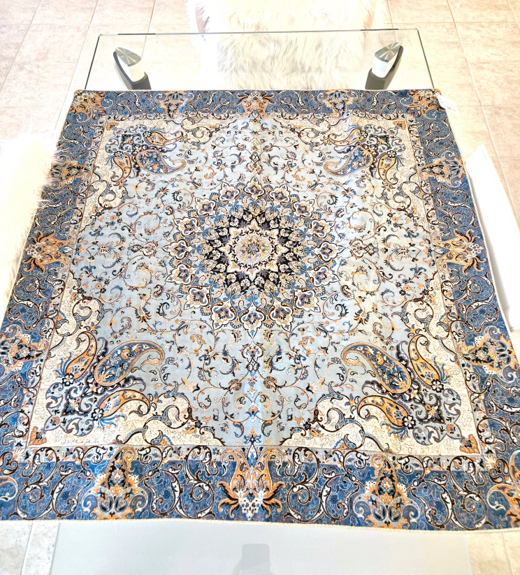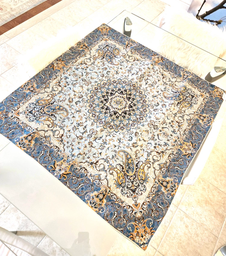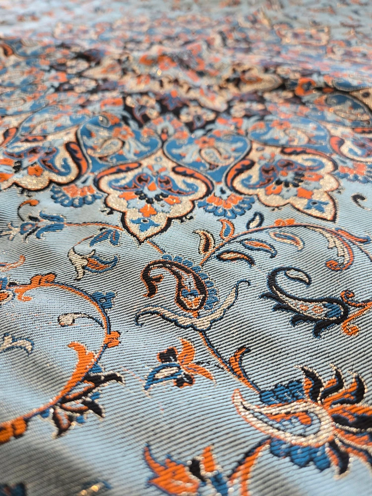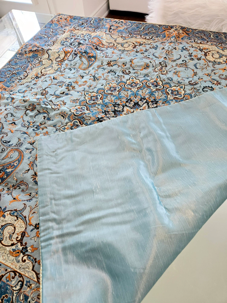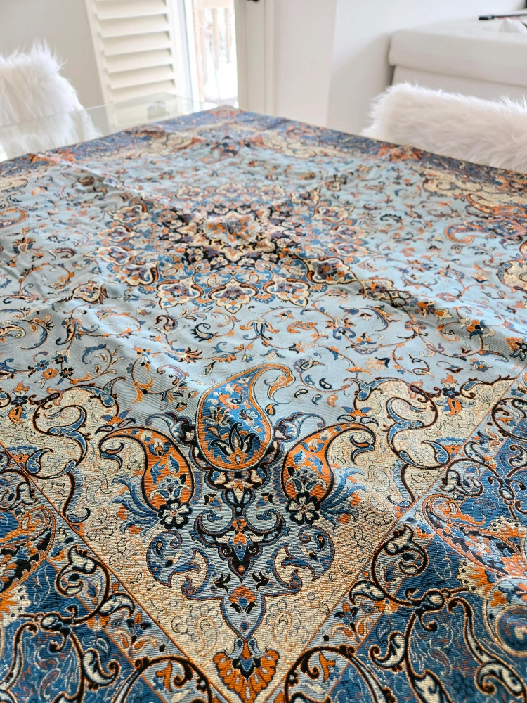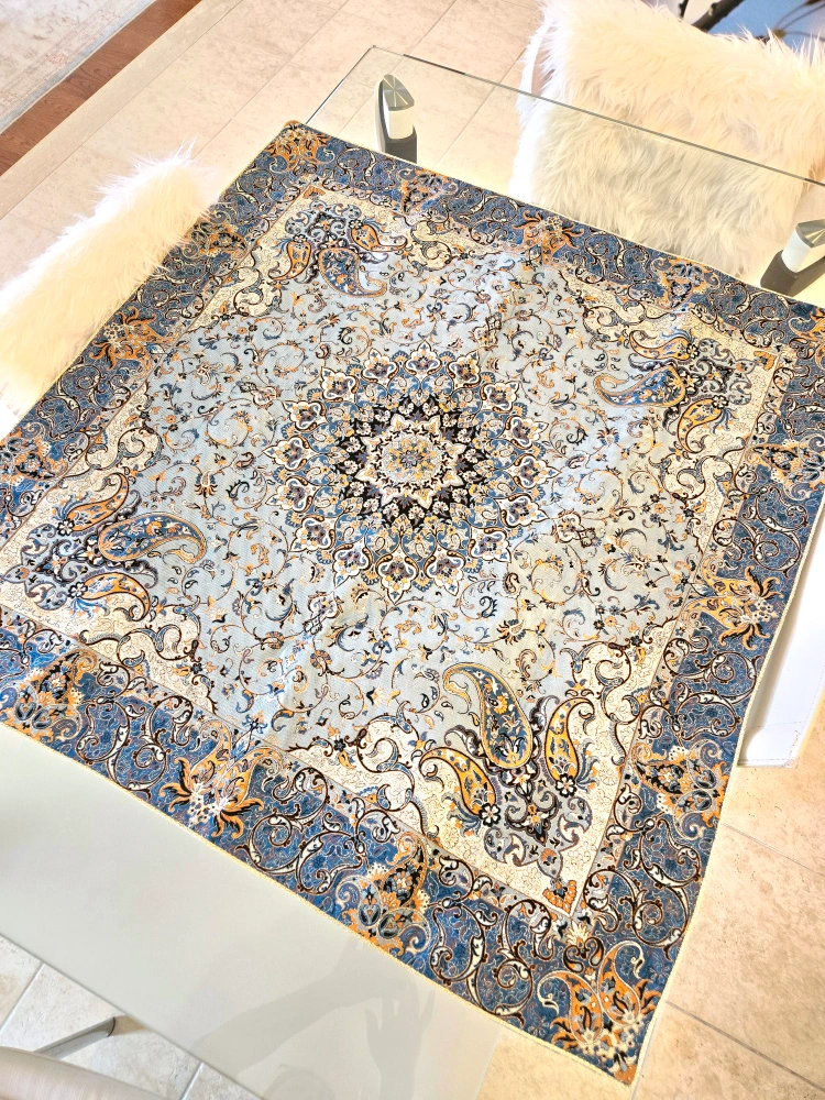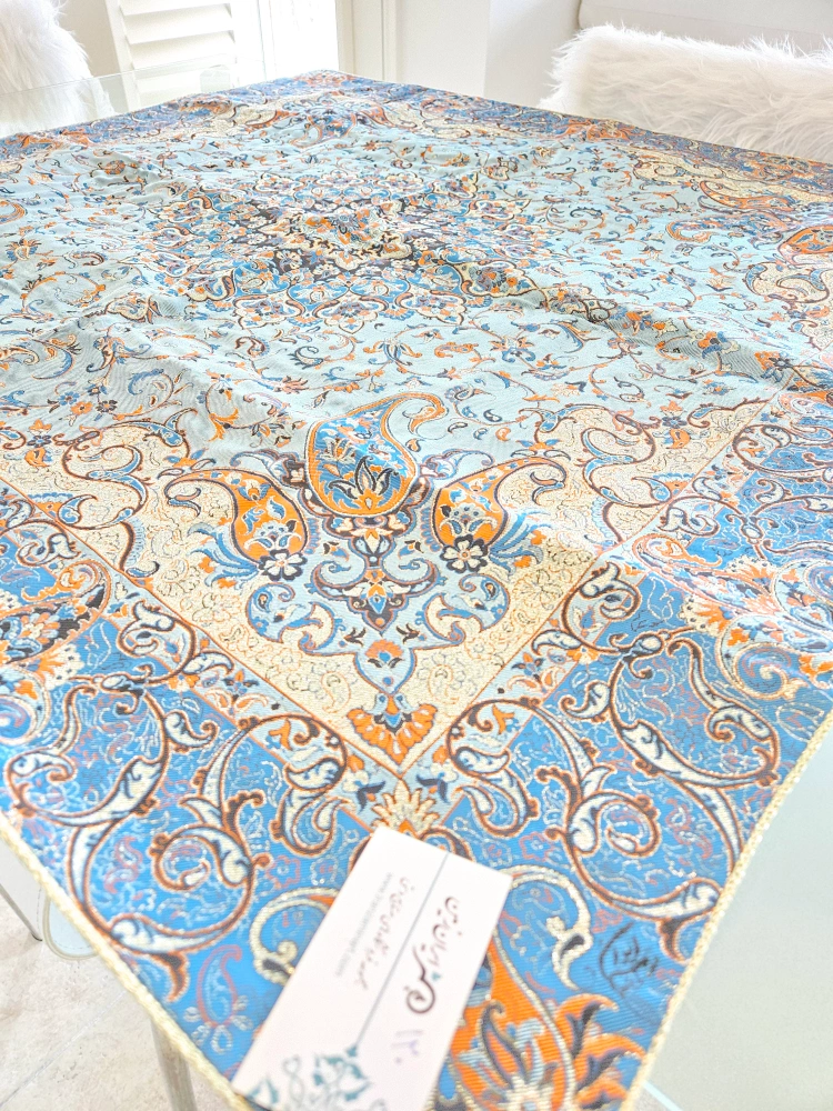 Elevate your dining experience with an exquisite tablecloth crafted from luxurious Termeh fabric in light Blue. Adorned with a timeless paisley pattern, this tablecloth is sure to impress.