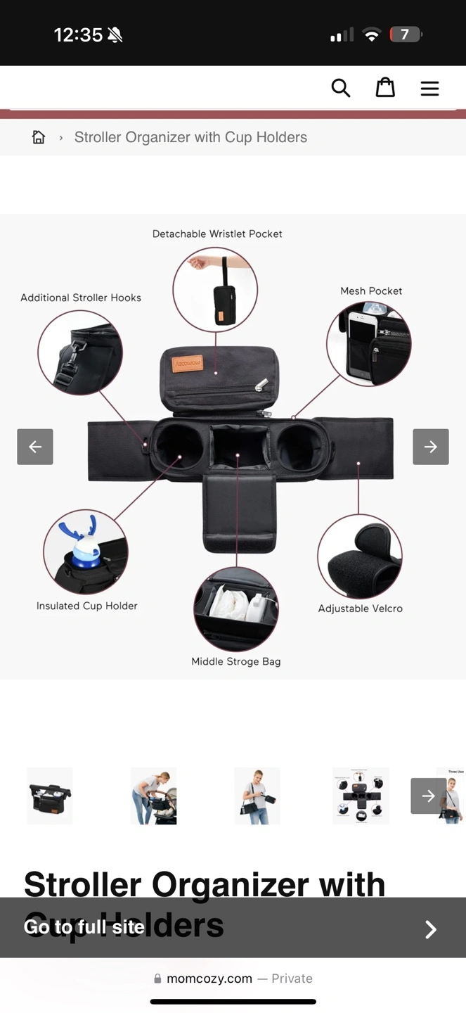 Universal stroller organizer. Features insulated cup holders, detachable phone bag, shoulder strap. Fits most strollers. Multiple pockets and adjustable velcro. Retails over 50$ plus tax My price is 25$ only New