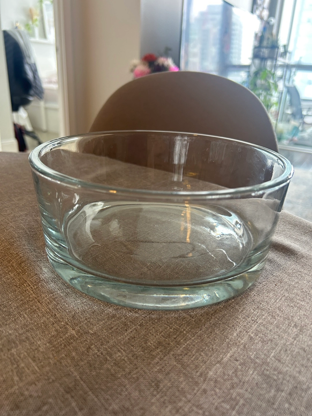 This terrarium makes a lovely home for succulents, ferns, moss, and your most special specimens. Measures approximately 18cm in diameter. Like new!