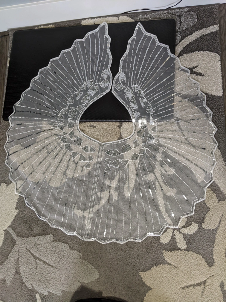 New. Beautiful sheer silver sequinned collar or bolero. Lightweight and elegant. Perfect for adding a touch of sparkle to any outfit. Serious Inquiries only! No delivery!