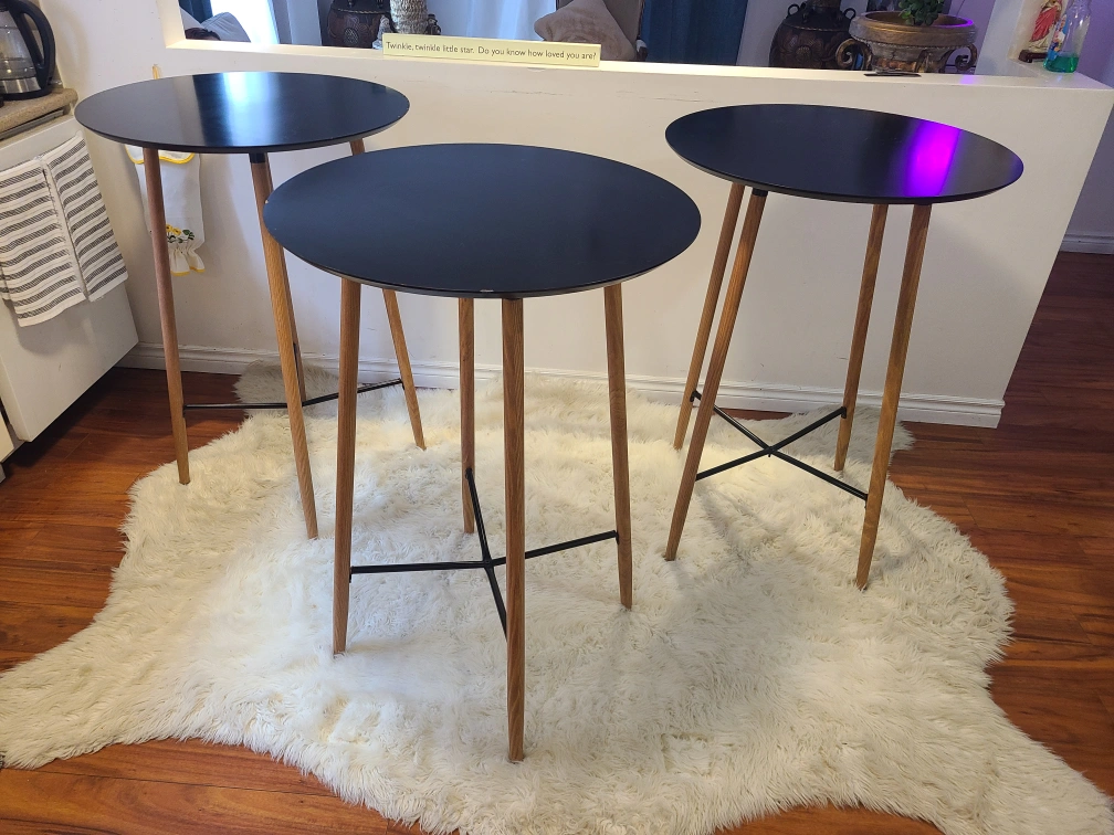 ๐จ๐ฆ I invite you to CHECK OUT my other listings as well. Maybe you find something you like. 3 Bar height table from Jysk Furniture. Good preowned condition, som3 scratches and minor scuffs, please refer to the video and.pictures. Great for office, presentation rooms, pub, bar table, etc. Easy complete disassemble to fit in any car.. Pickup from Mississauga, Hurontario and Eglinton.
