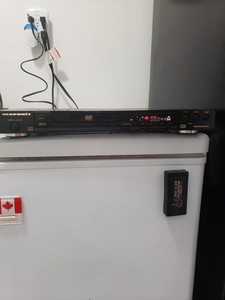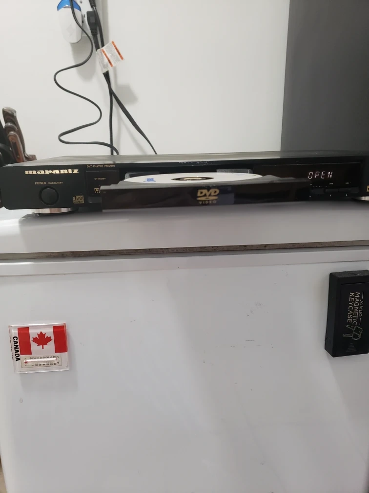 DVD player. Plays DVDs. Black. Good condition. Includes power cord.
