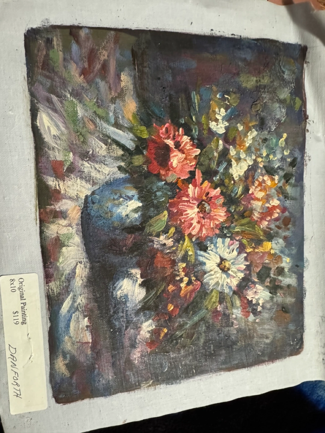 Beautiful original oil painting. Floral bouquet in dark vase. Artistic Impressions Inc. label on back. Excellent colours and brushstrokes.