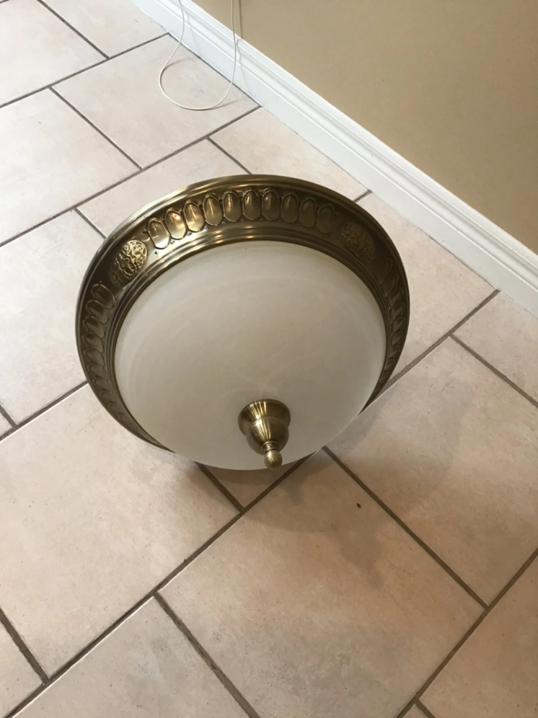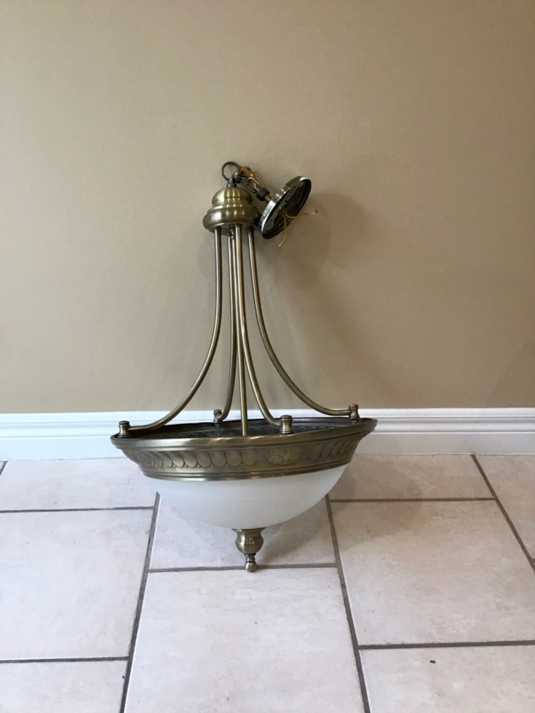 Beautiful brass pendant light. Features a frosted glass shade. Elegant design, perfect for a dining room or entryway. Pre-owned, minor wear. Pick up Rogers rd and old weston rd area Please check my other listings