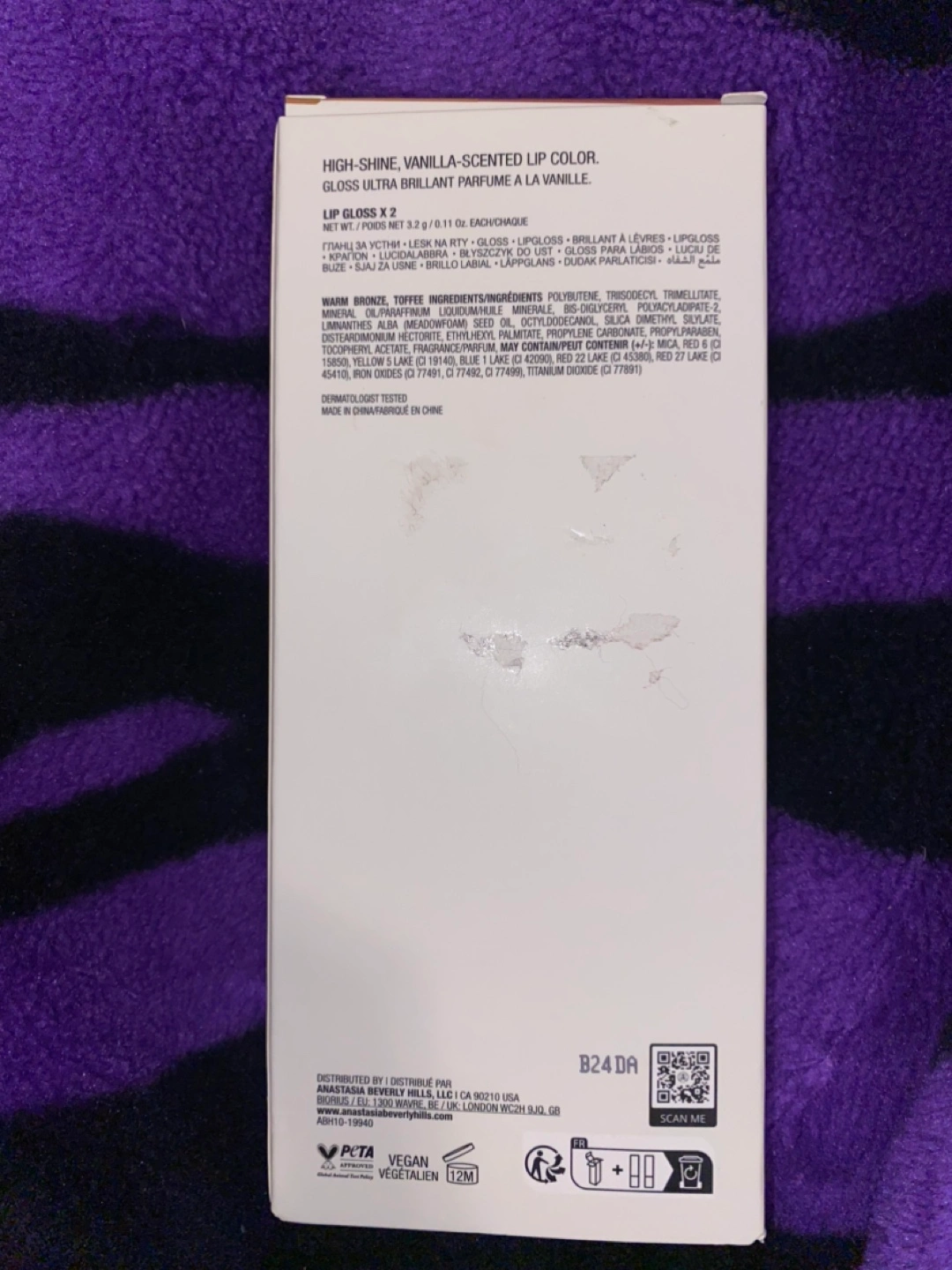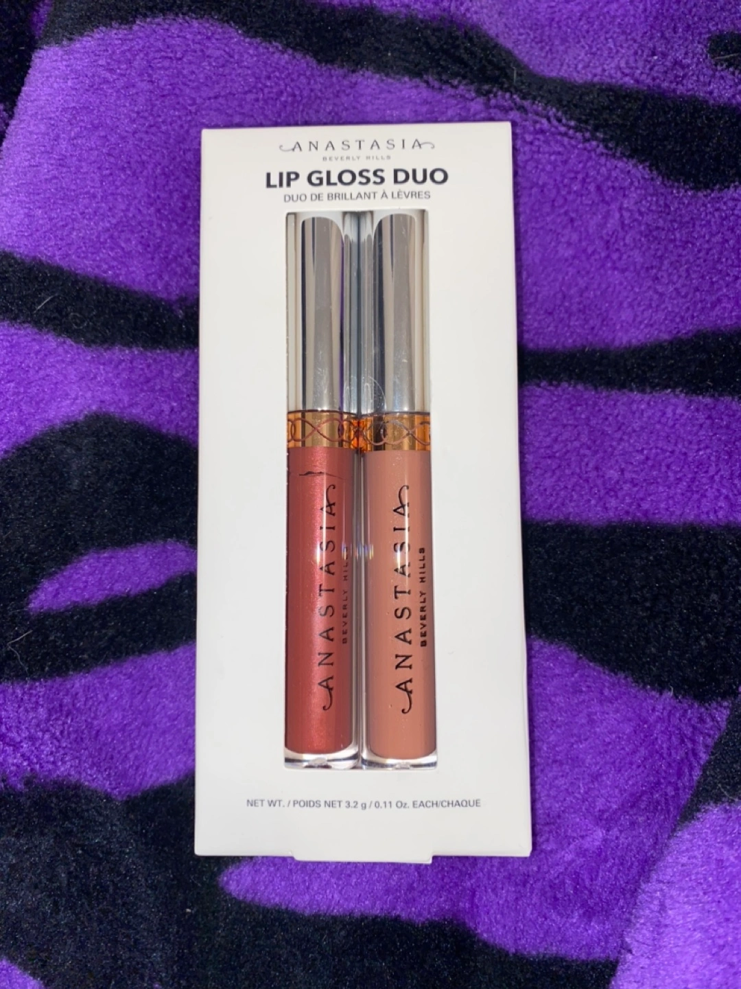 New, unopened Anastasia Beverly Hills Lip Gloss Duo. High-shine, vanilla-scented lip gloss. Two shades included. Vegan and cruelty-free.