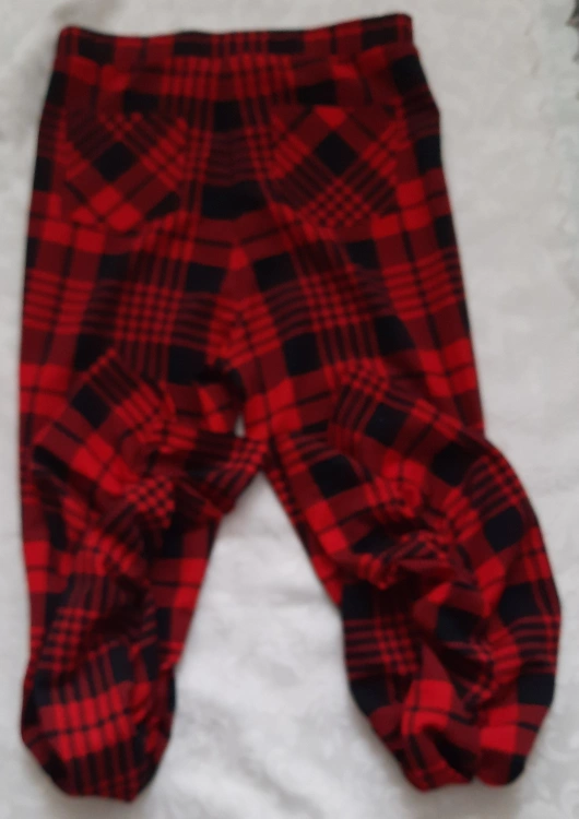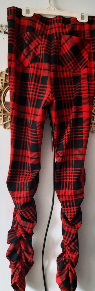 Cute red and black plaid pant. Features a comfortable elastic waistband, pant are gathered at the ankles. Great for casual wear, 2 back pockets.