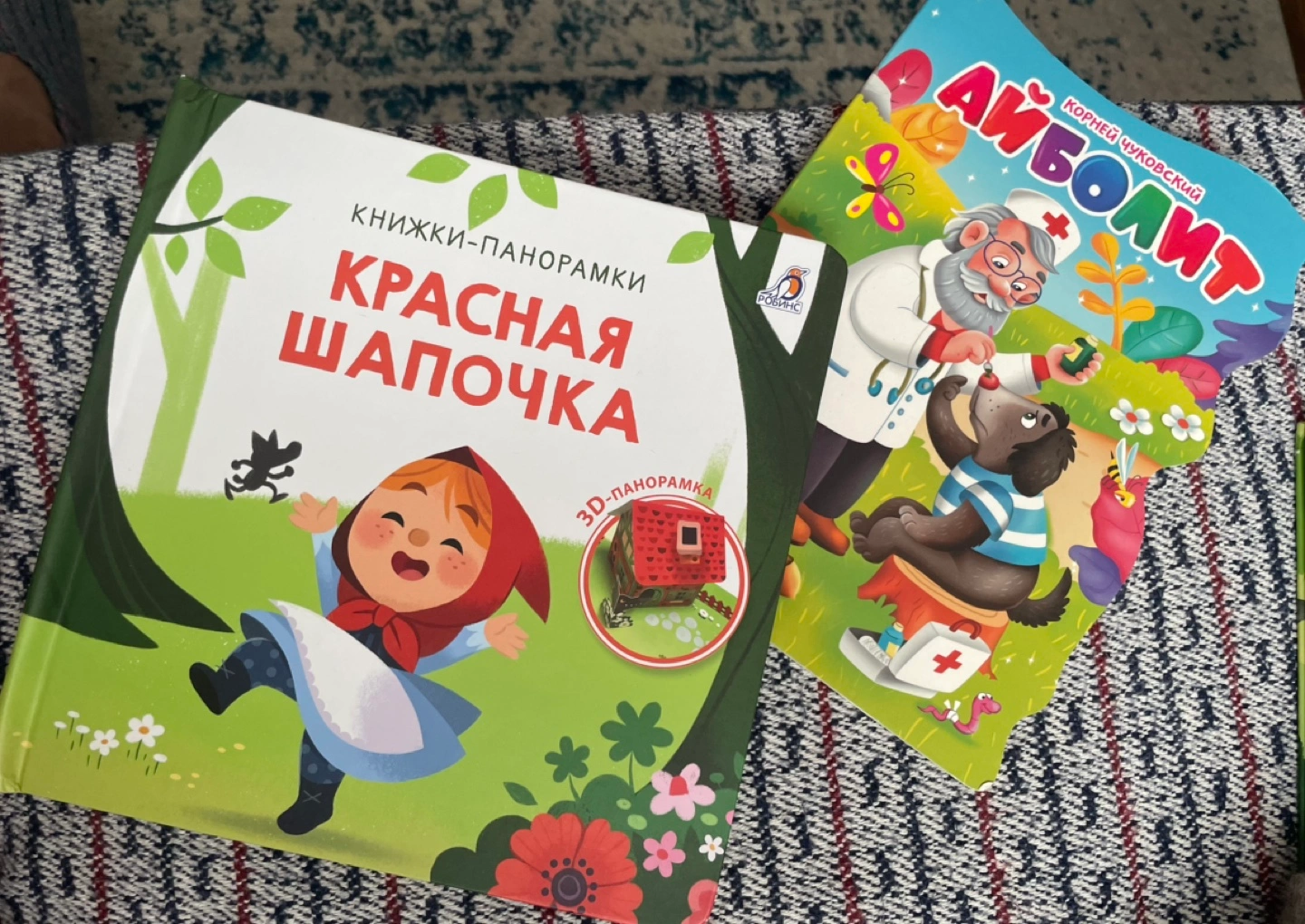 Two Russian children's books. One is a 3D Little Red Riding Hood. The other features Dr. Aibolit. Excellent condition