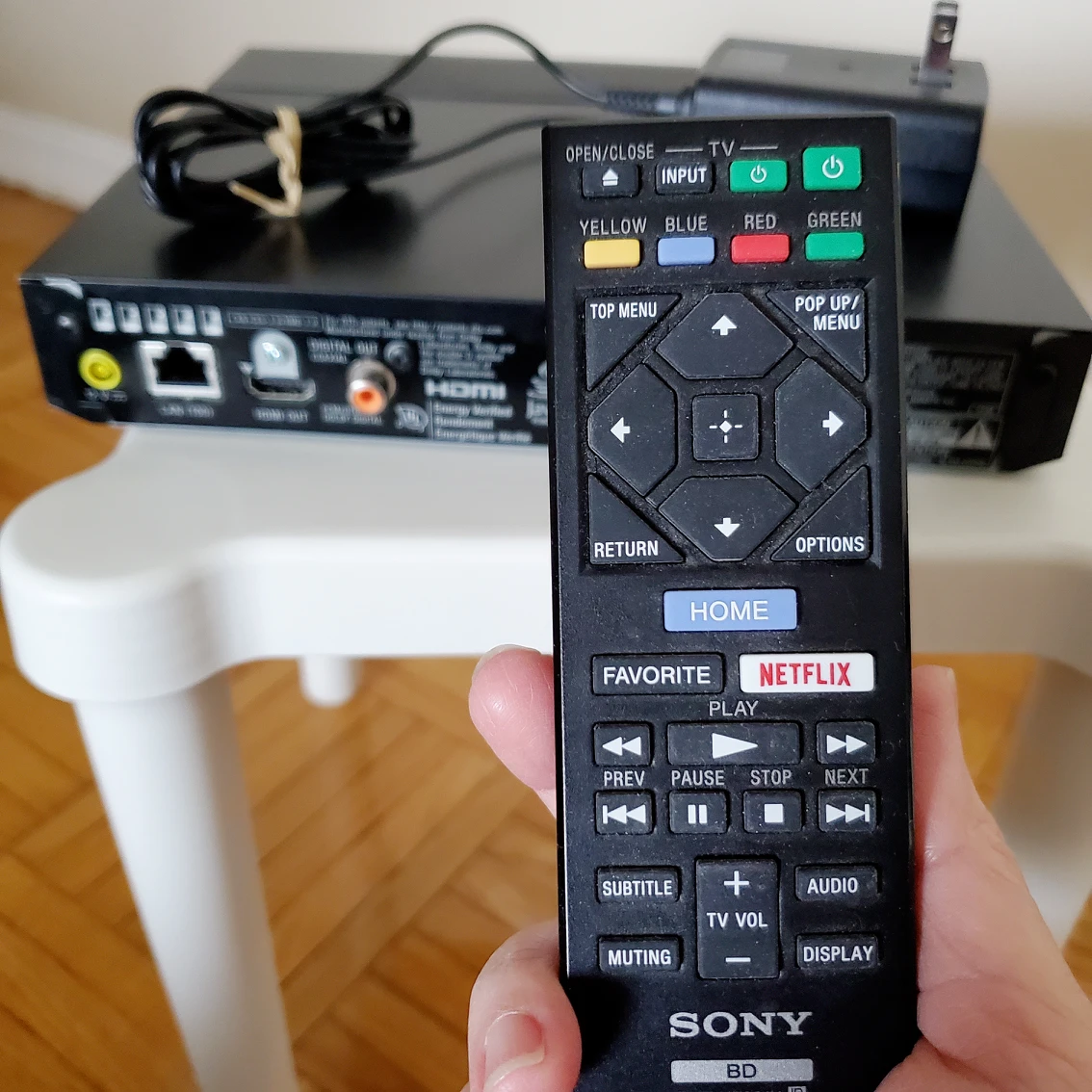 Sony Blu-ray disc / DVD player. In very good condition. It also plays non Blu-rays, i.e. DVD's as well. Doubles as a streaming device for apps such as Netflix, etc. - pls see last photo Available for pick-up at Bayview Village (mall)