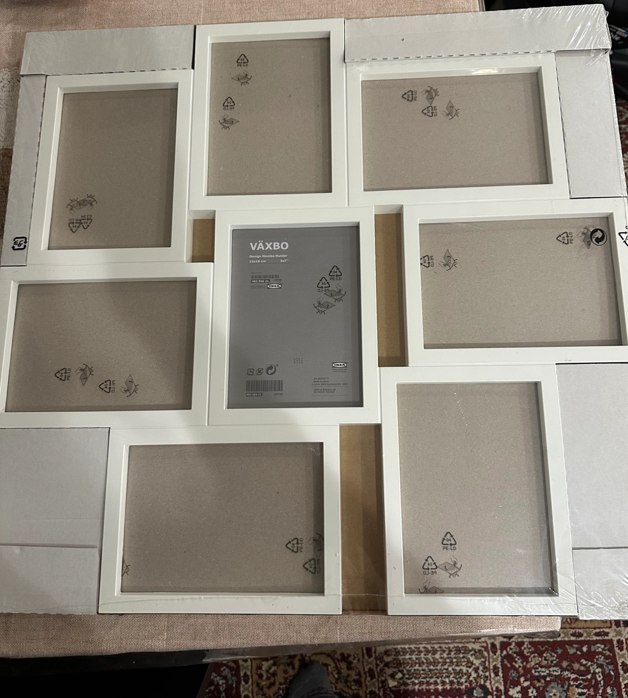 White multi-photo frame. Nine openings. New in box. Perfect for displaying favourite memories.