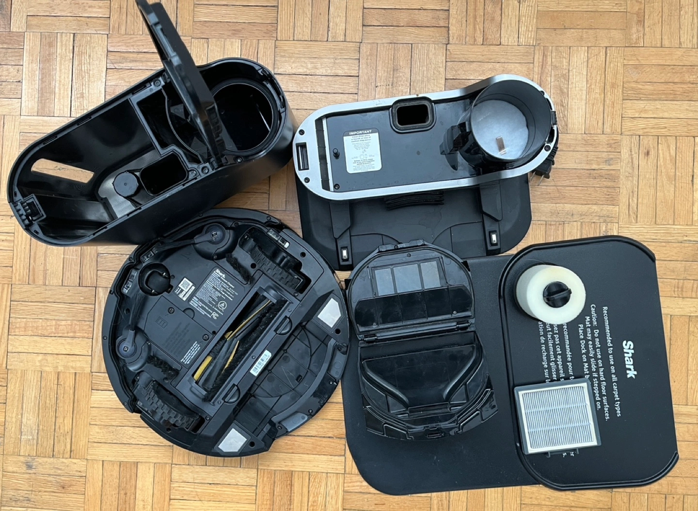Self-emptying robotic vacuum. Has opportunity for Wi-Fi connection. Includes charging dock and all accessories. Clean and looks nice.