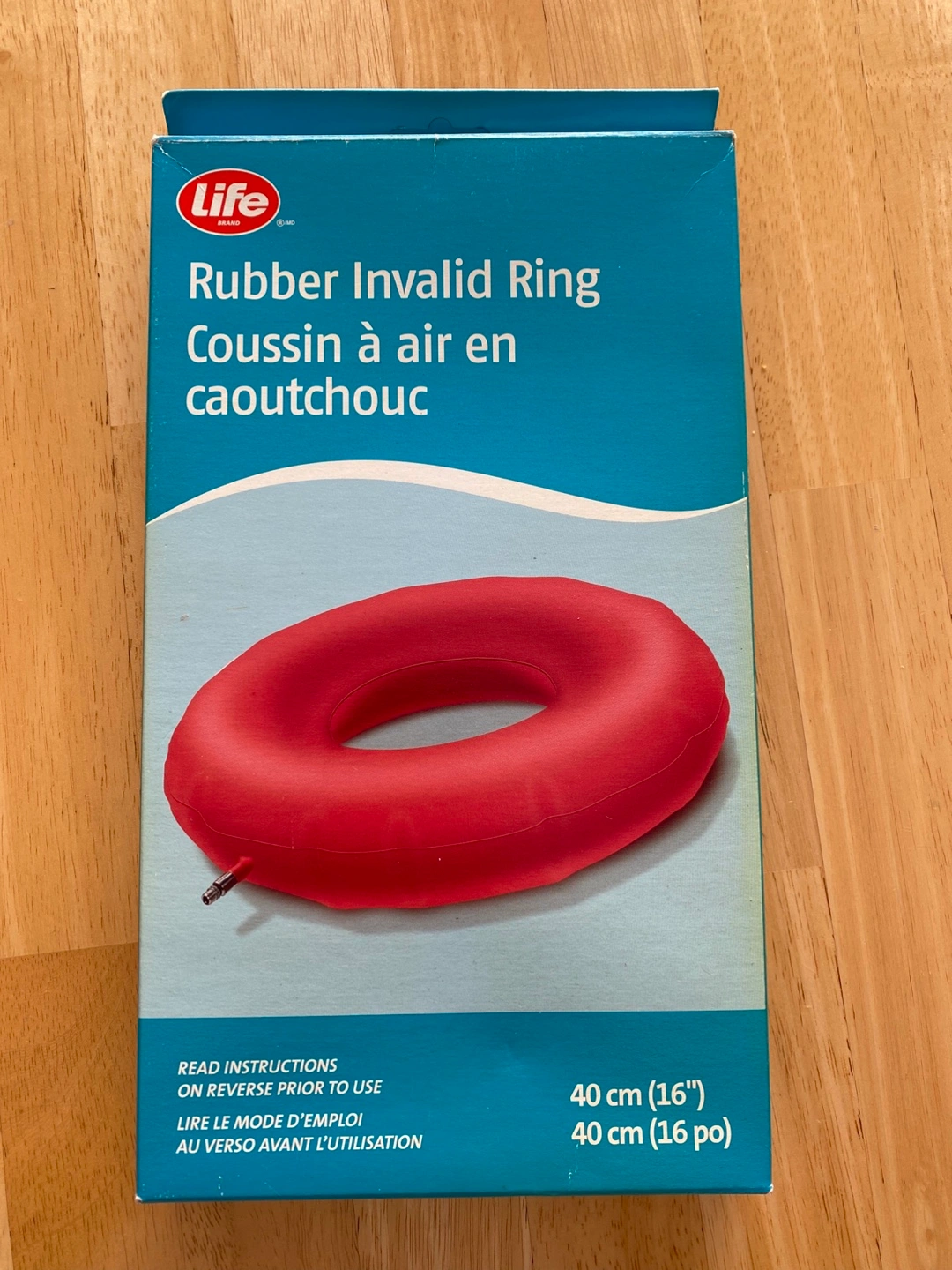 •NEW” never opened, still in box •Excellent condition, clean, no breakage •Inflatable ring cushion •Colour: Red •Size: 40 cm (16 inches) diameter •smoke-free, pet-free environment **LOCATION: Jane & Lawrence**