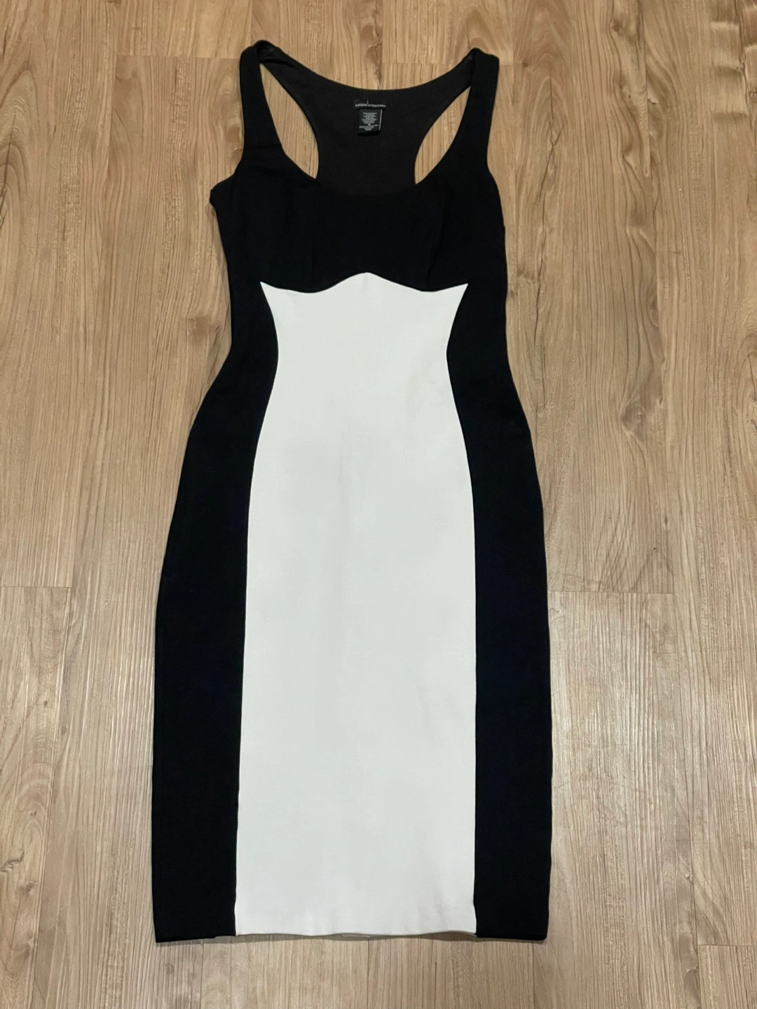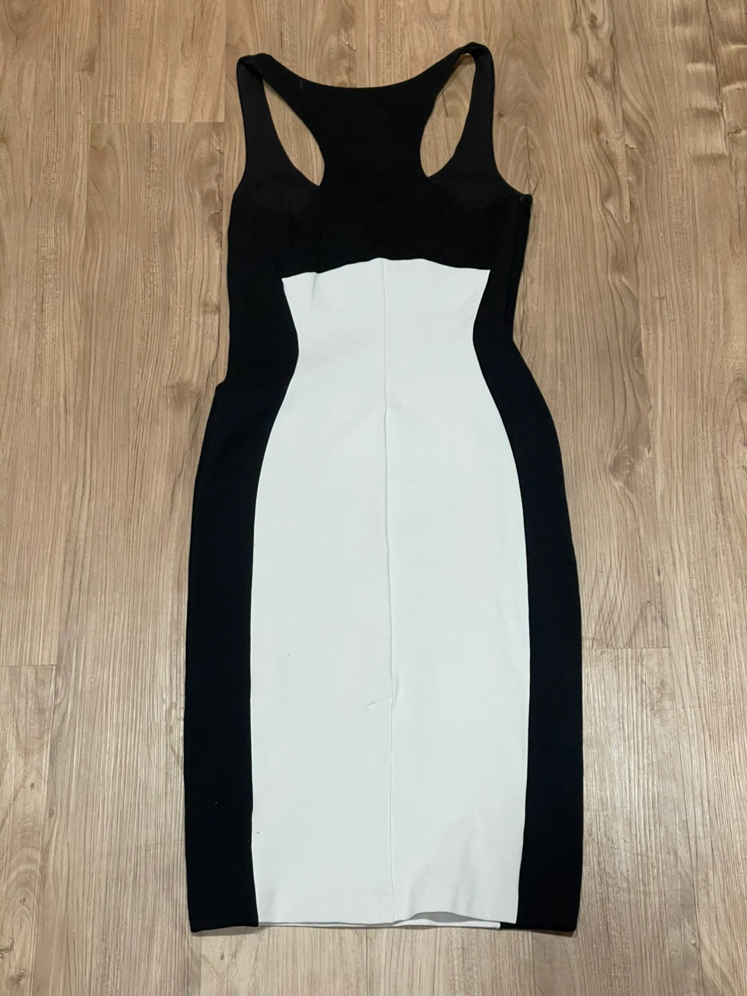 Stunning black and white bodycon dress. Racerback design. Made of a stretchy material. Size 2.