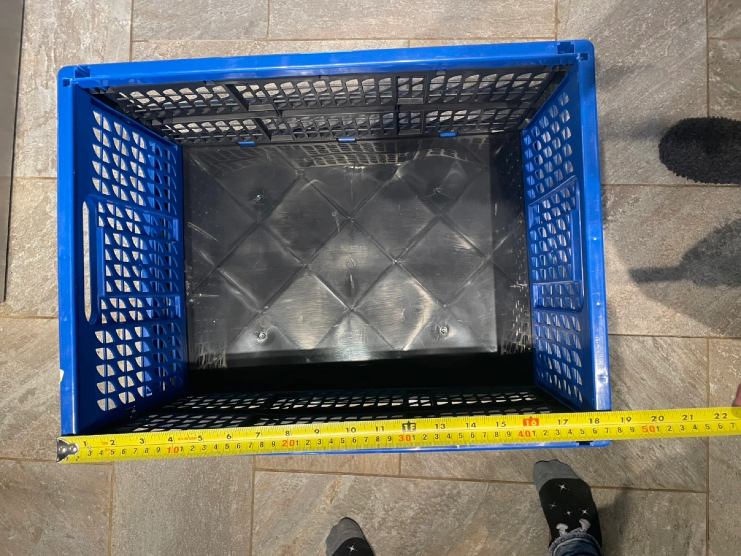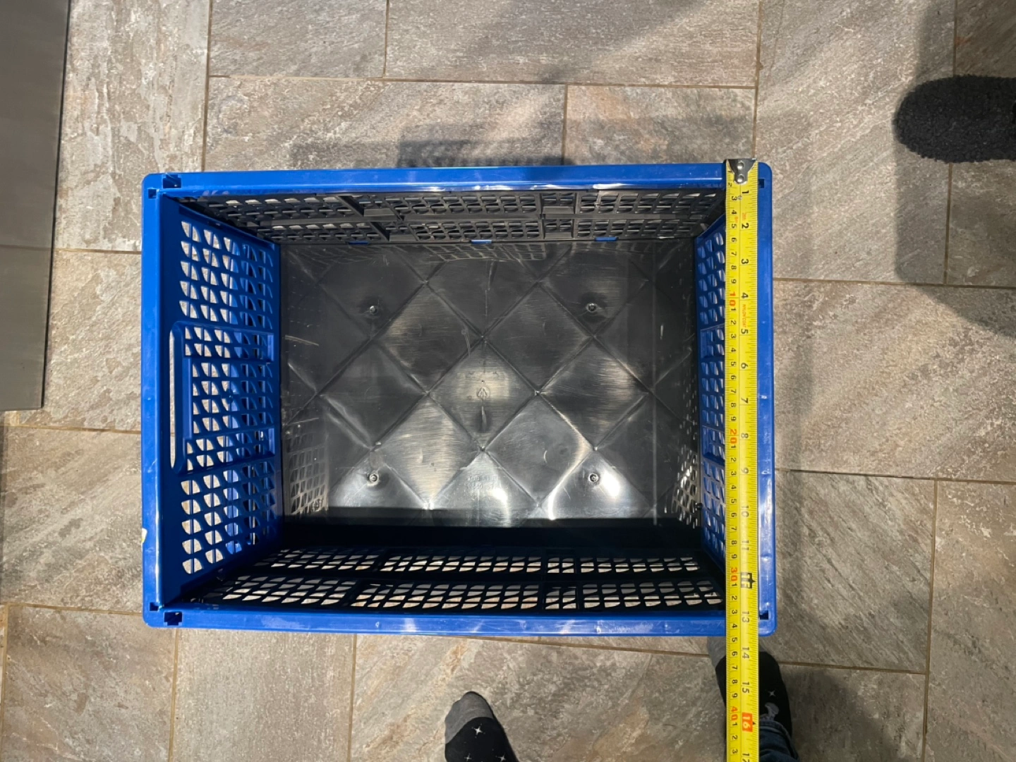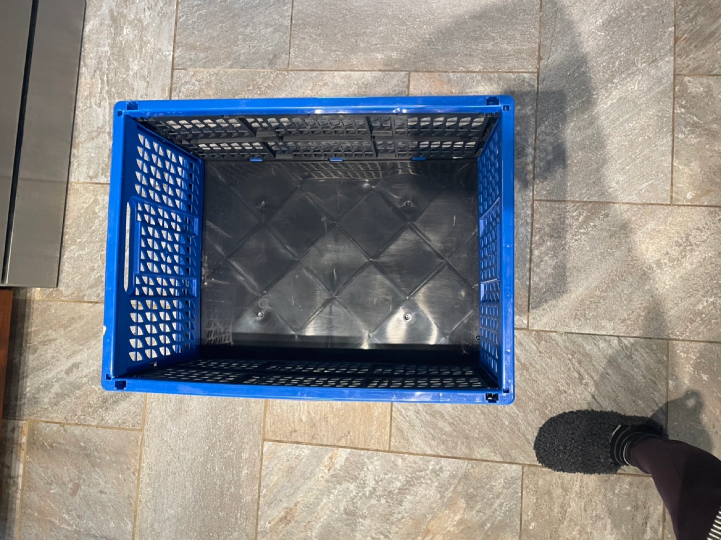 Three blue plastic storage containers. Collapsible for easy storage. Great for organizing or moving.
