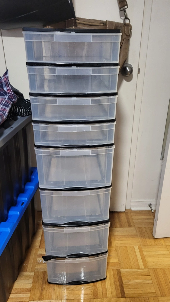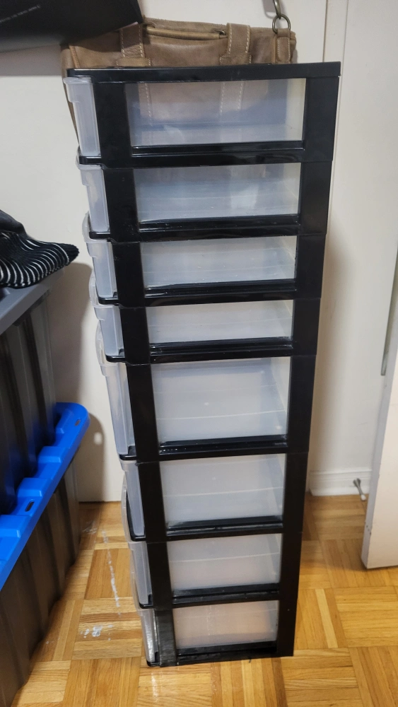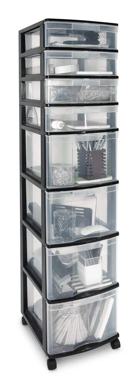 MOVING THIS WEEK NEED GONE ASAP. Meetup at St. James Community Centre (Sherbourne and Wellesley). type A Clear Black Frame 8-Drawer Storage Tower/Cart with Wheels, 46-inches we just didn't install the wheels but they are provided.