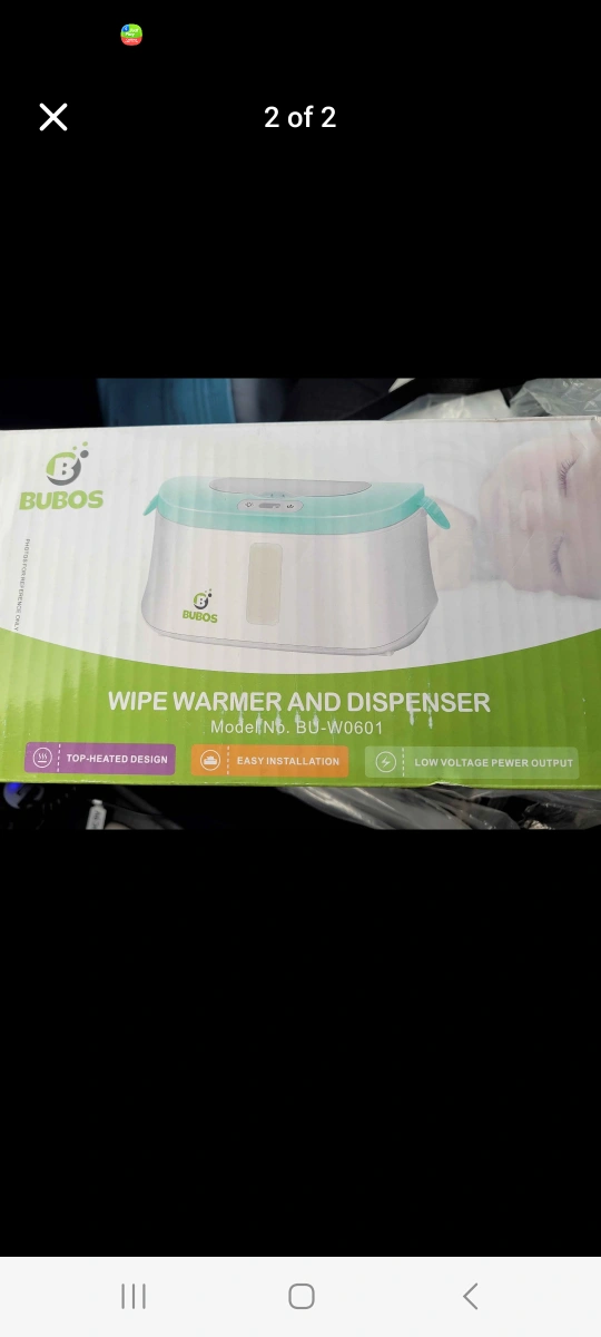 Electric wipe warmer and dispenser. Keeps wipes warm and readily available. Compact design. Easy to use.