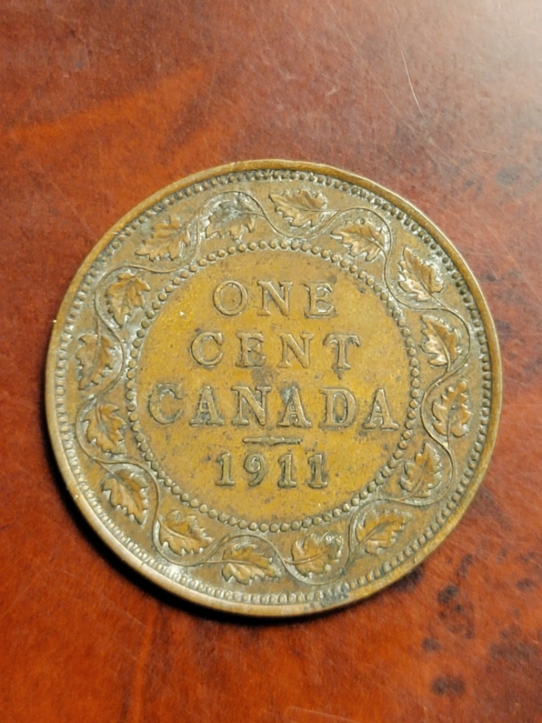 Vintage rare Canadian one cent coin. Dated 1911. King George V.