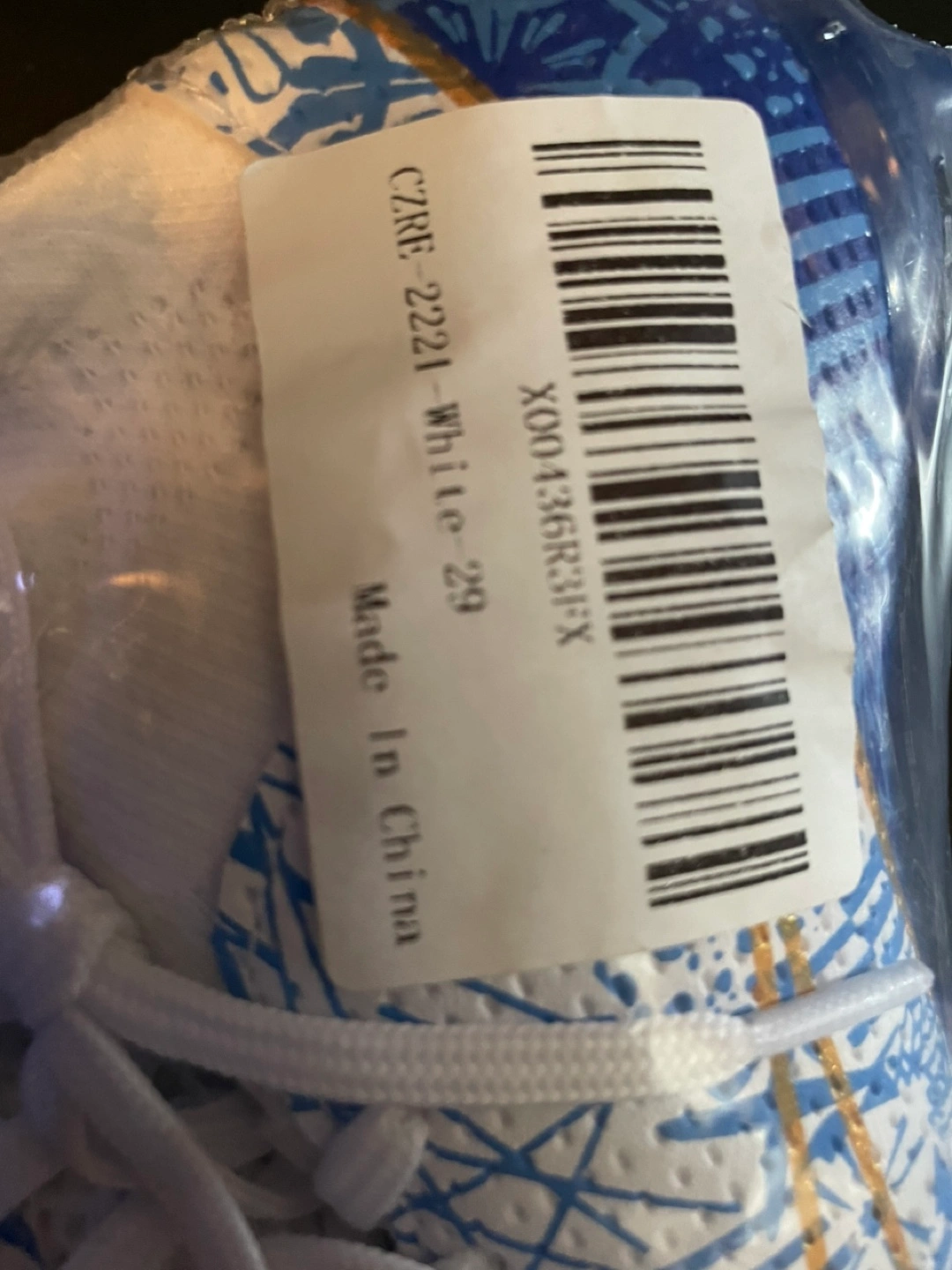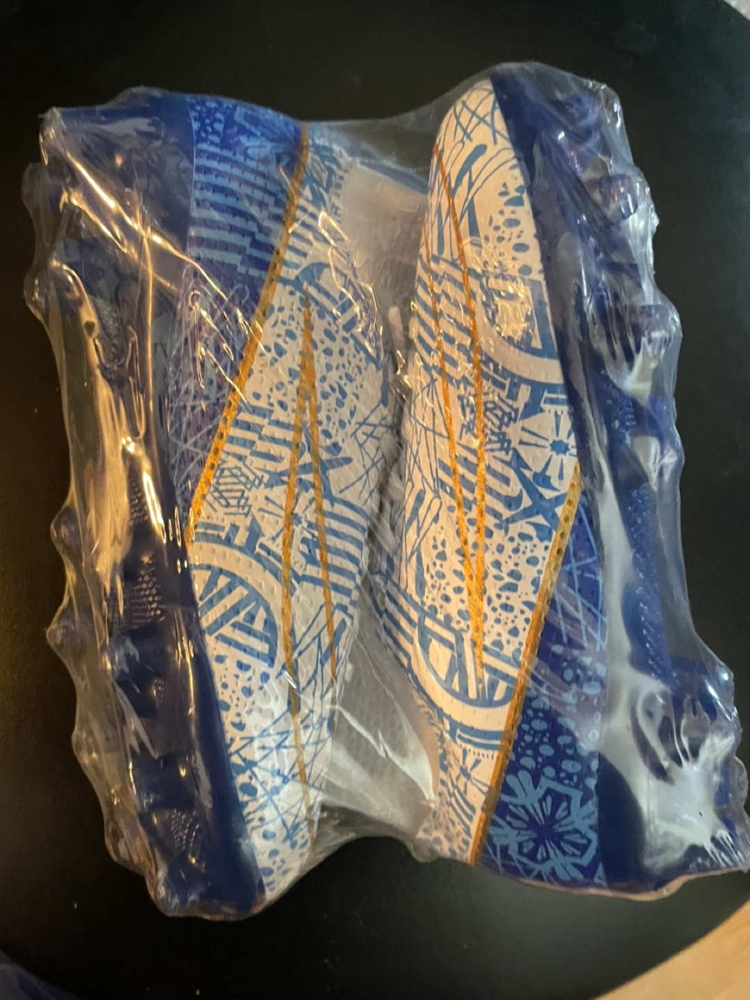 Brand NEW (kids) soccer cleats. Size 29. White, blue and gold design. Never worn. $25. Price negotiable