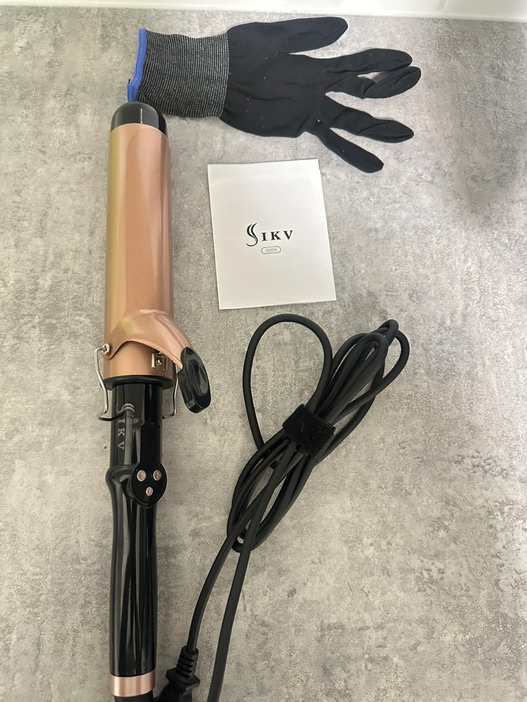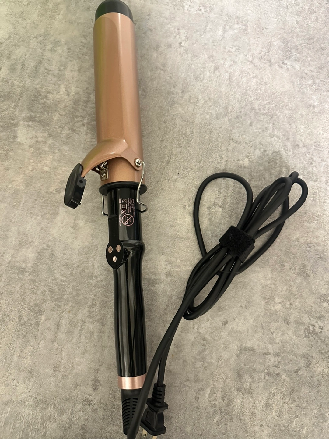 Automatic hair curler. Rose gold and black. Adjustable temperature. Includes heat resistant glove and instruction manual. New, never used.