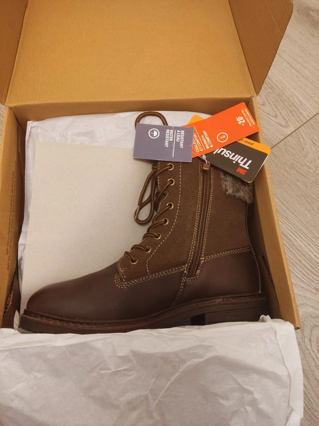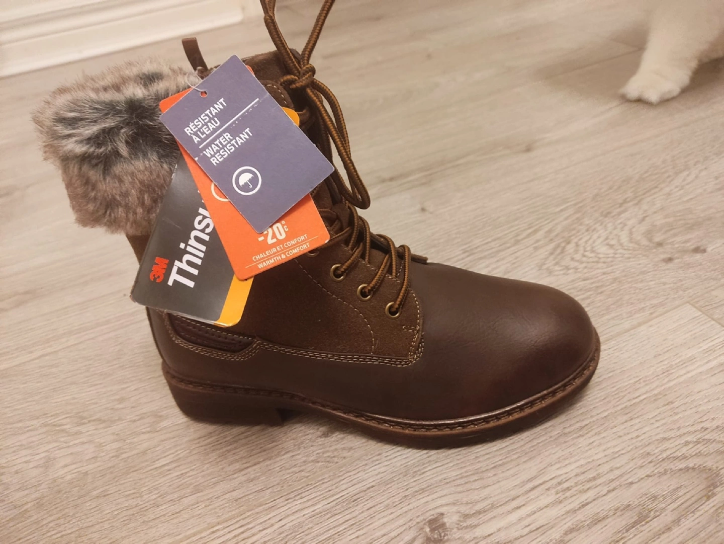 Brand new women's brown winter boots. Lace-up style, faux fur trim. Water resistant. Thinsulate insulation. Comes in original box.