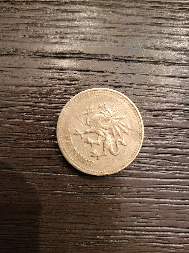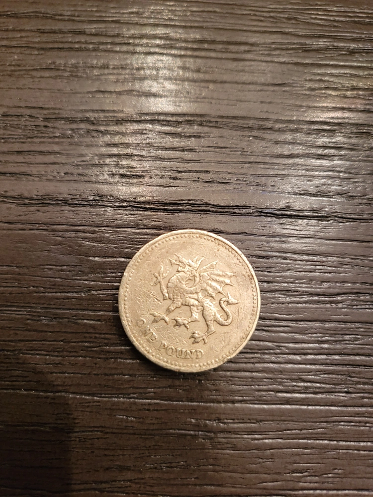 Rare Welsh one pound coin. Features a dragon on one side and Queen Elizabeth II on the other. Dated 2000. $25
