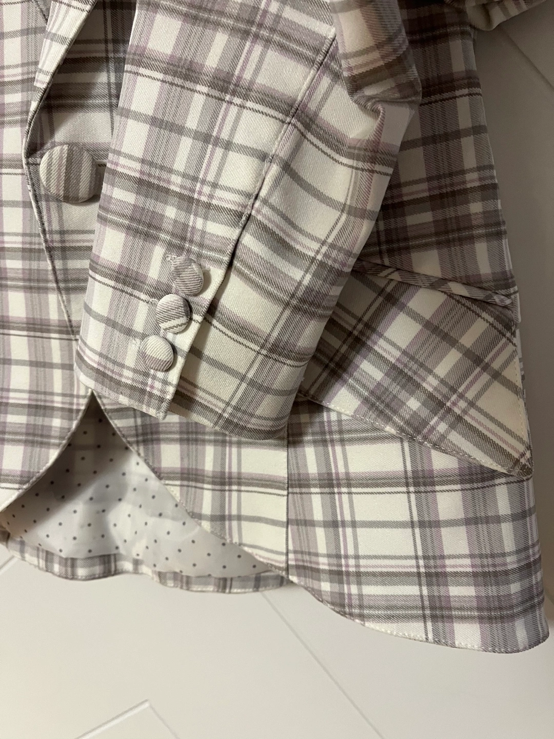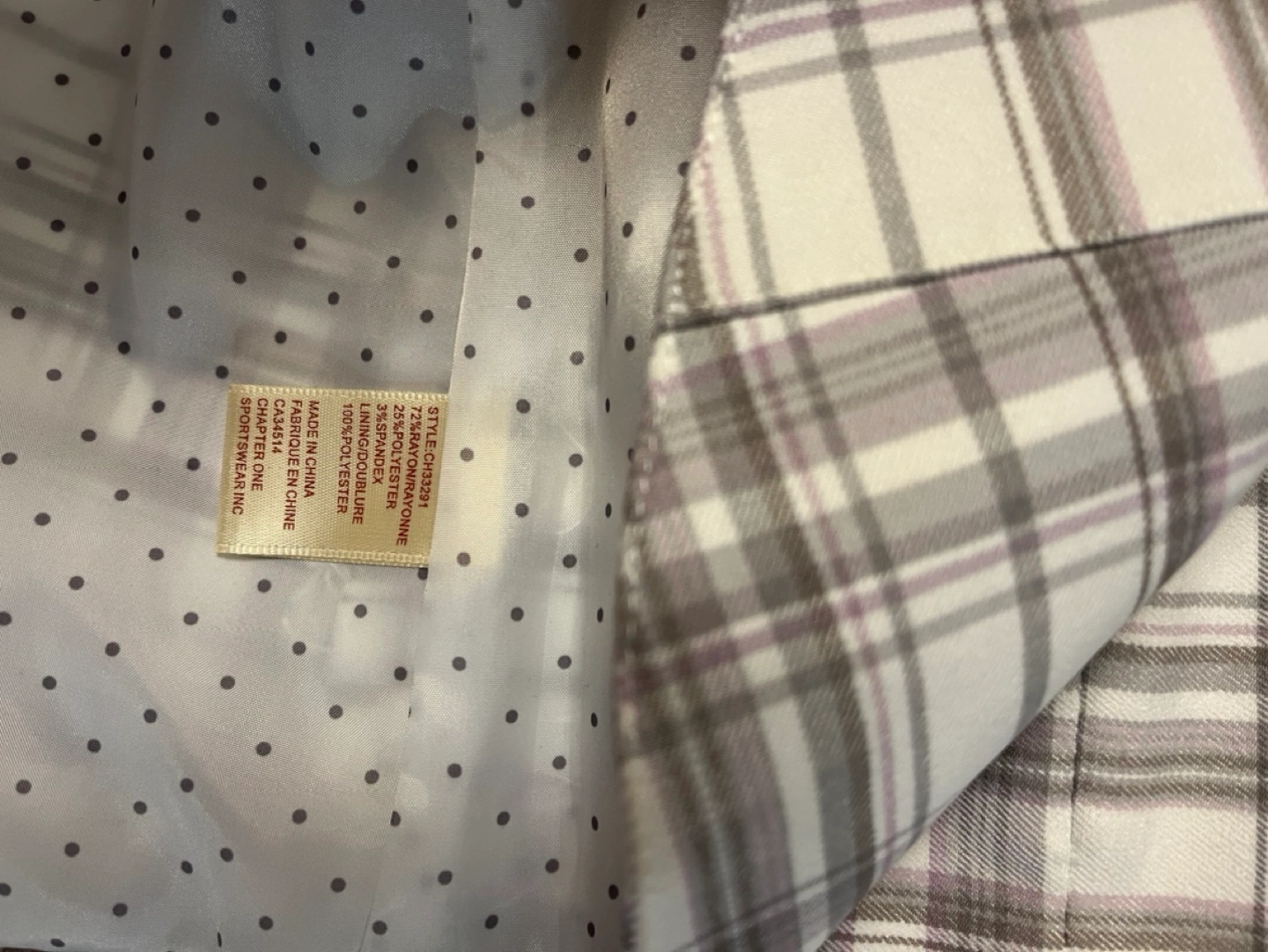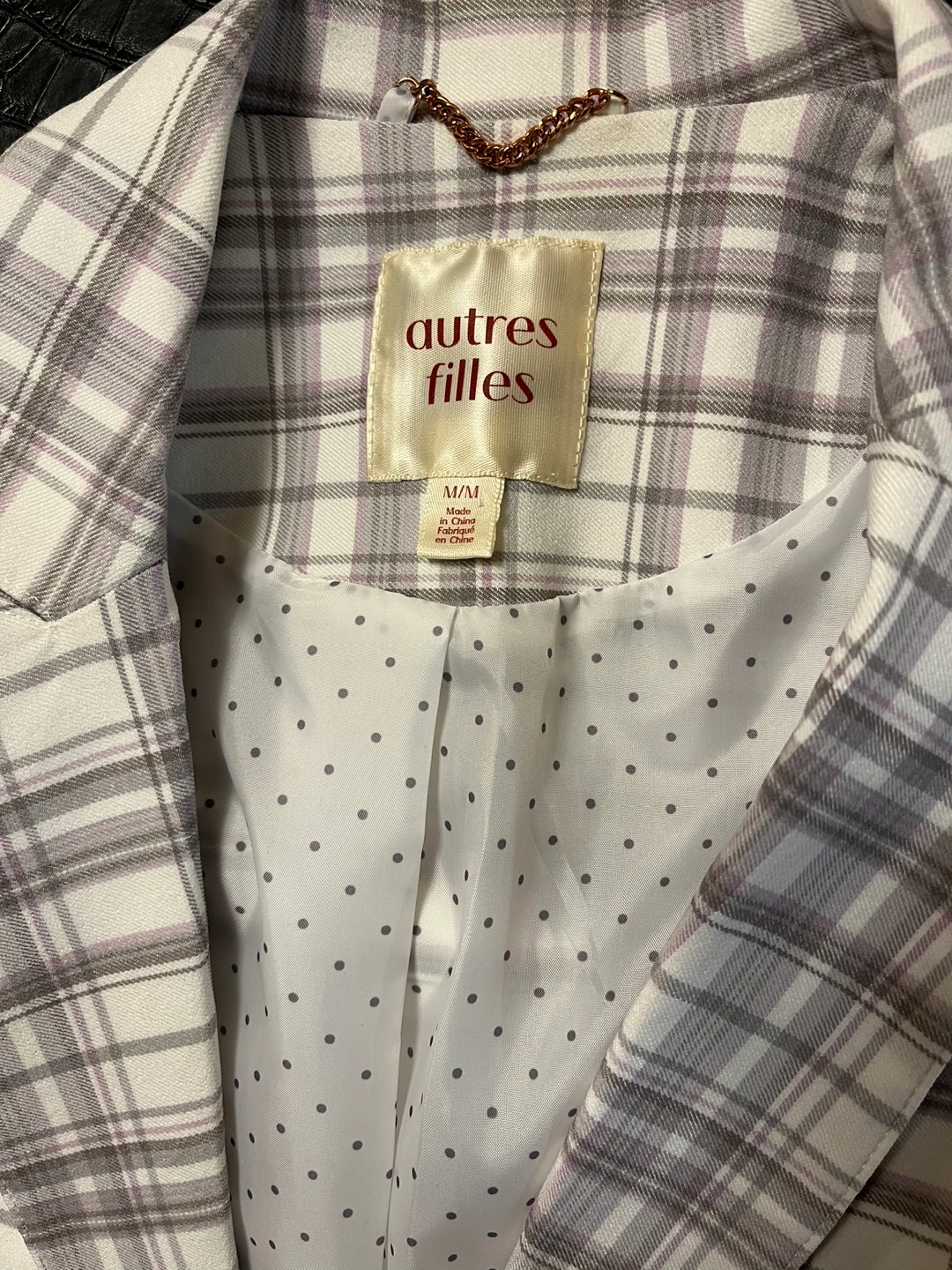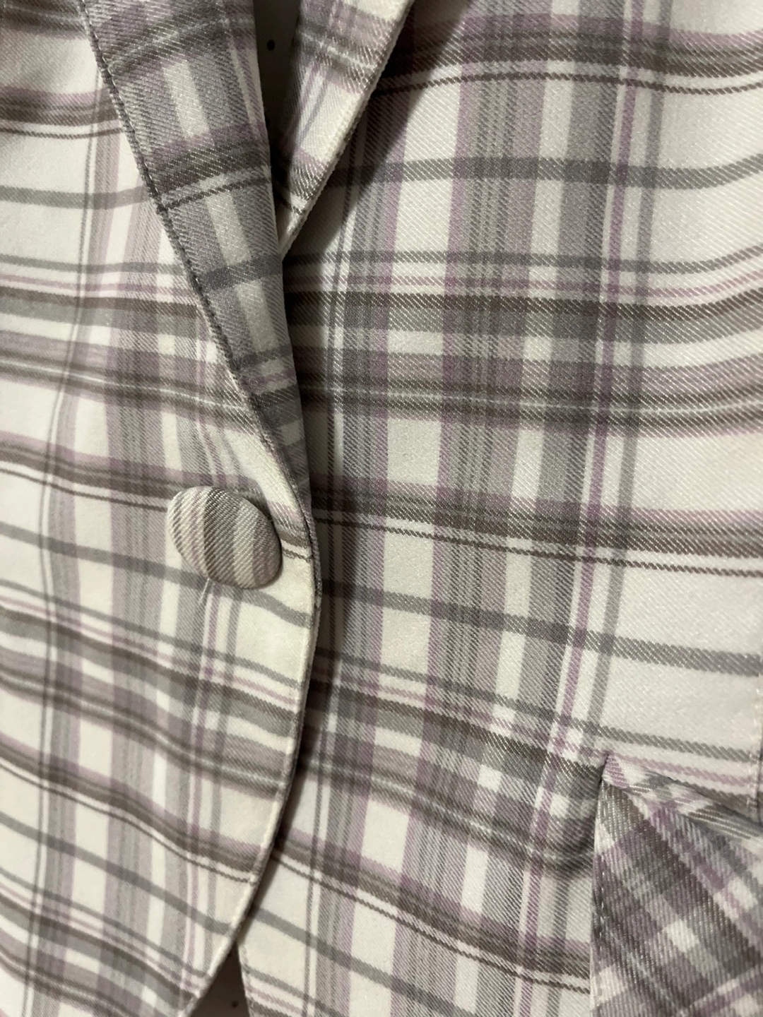 Women's blazer jacket Cream and grey plaid pattern Single-breasted Size medium Pick up Bloor and Islington Etobicoke