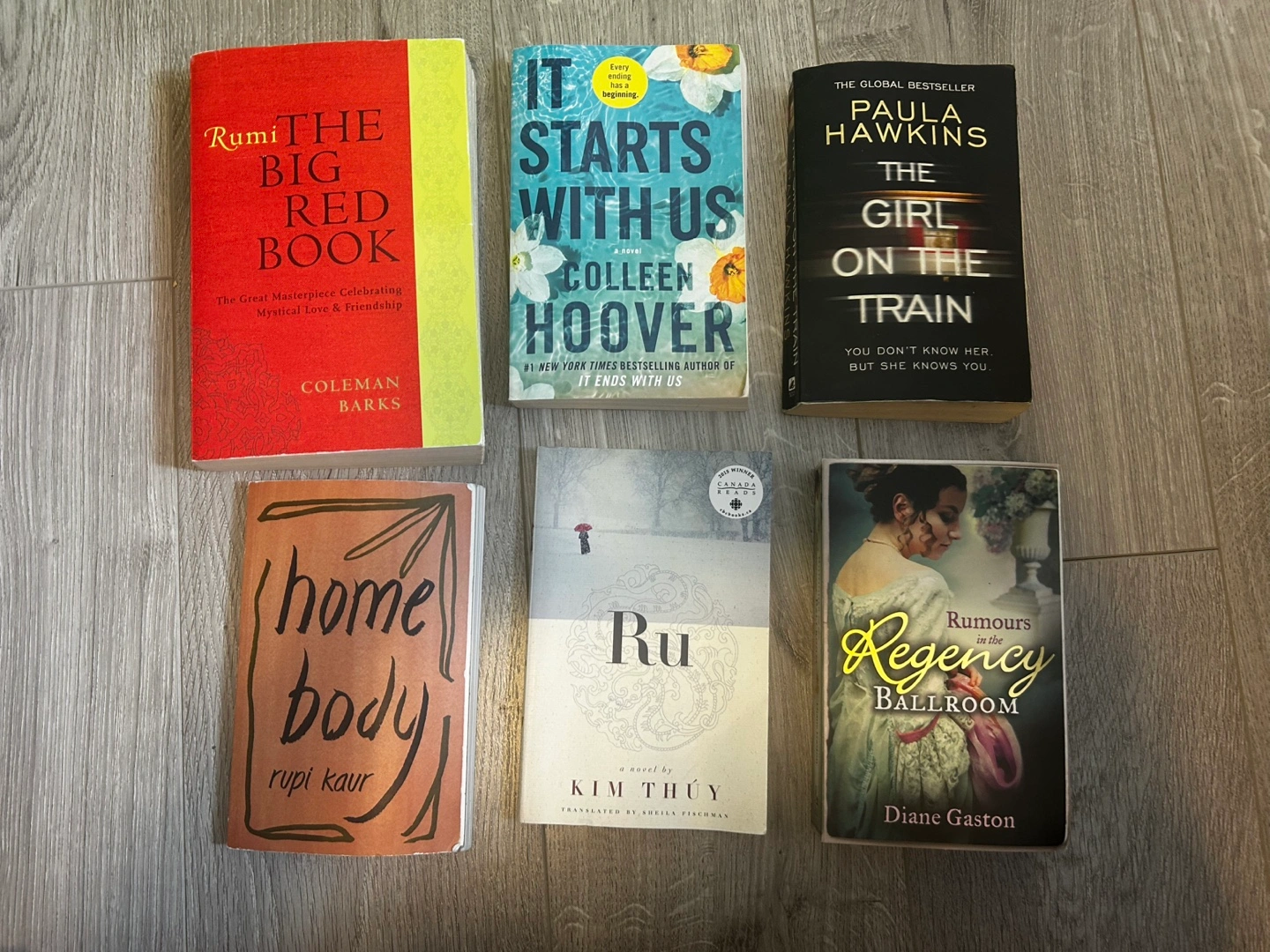 Includes fiction and poetry. Authors include Coleman Barks, Colleen Hoover, Paula Hawkins, Rupi Kaur, Kim Thúy, and Diane Gaston. $5 each It starts with us - SOLD