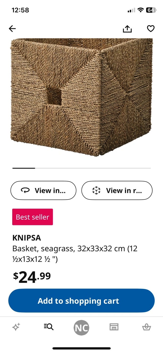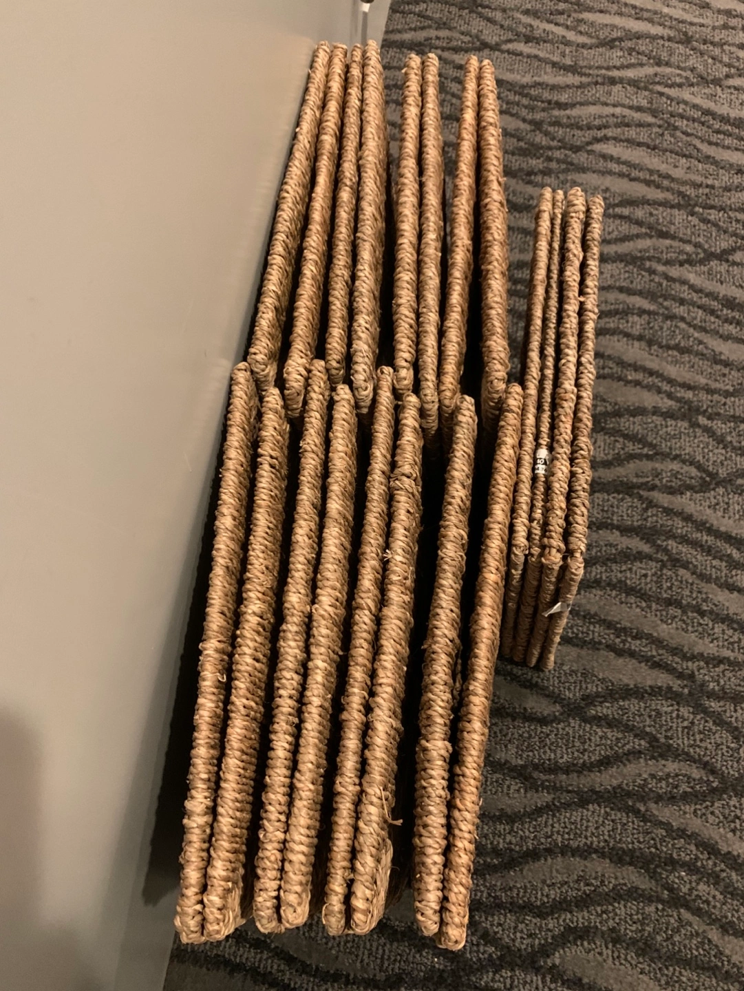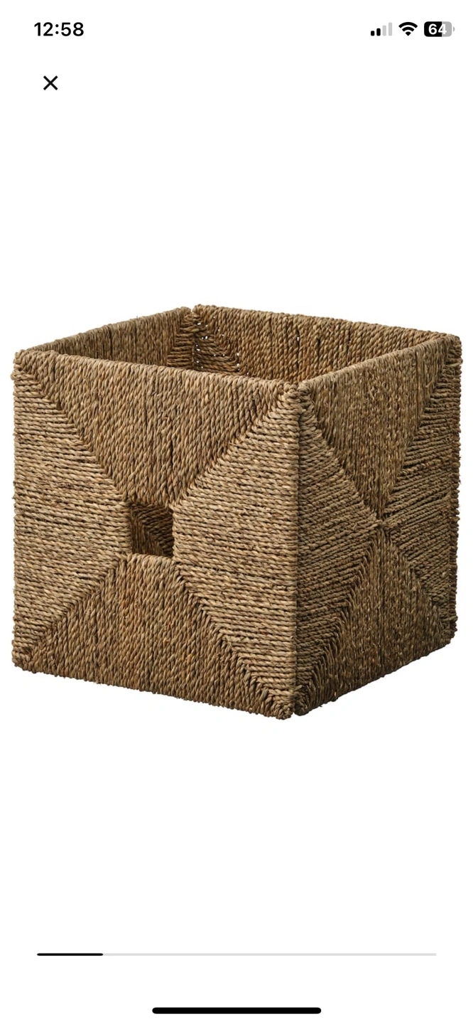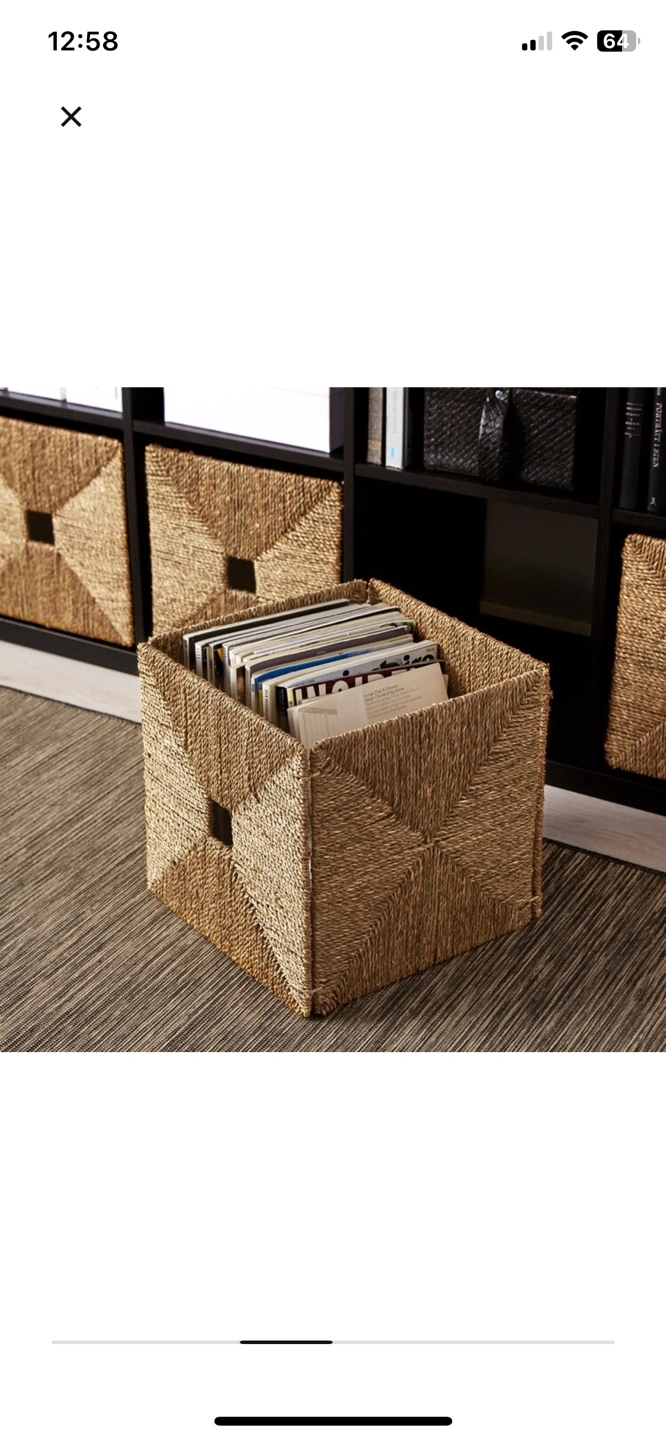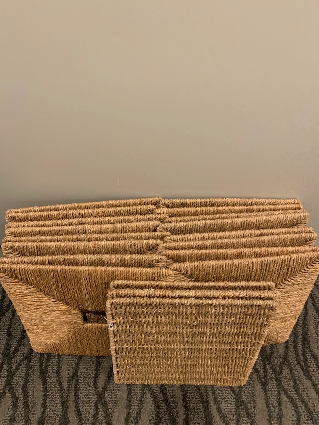 4 Seagrass baskets for sale. Perfect for Kallax and Expedit furniture cubes. Also very pretty when holding a planter on the floor. You can use it for a multitude of ways: books, magazines, hobbies, craft, documents, clothes, etc. ***For more information about this item, pls visit the Ikea website. Value: $29.25 each tax in. ‼️Prices are FIRM (already discounted). Thx! Buy 1 = $20 Buy 2 = $19 each = $38 Buy 3 = $18 each = $54 Buy 4 = $17 each = $68 Pick-up, cash, no holds. 💛~Look at my other listings for great bundle discounts.