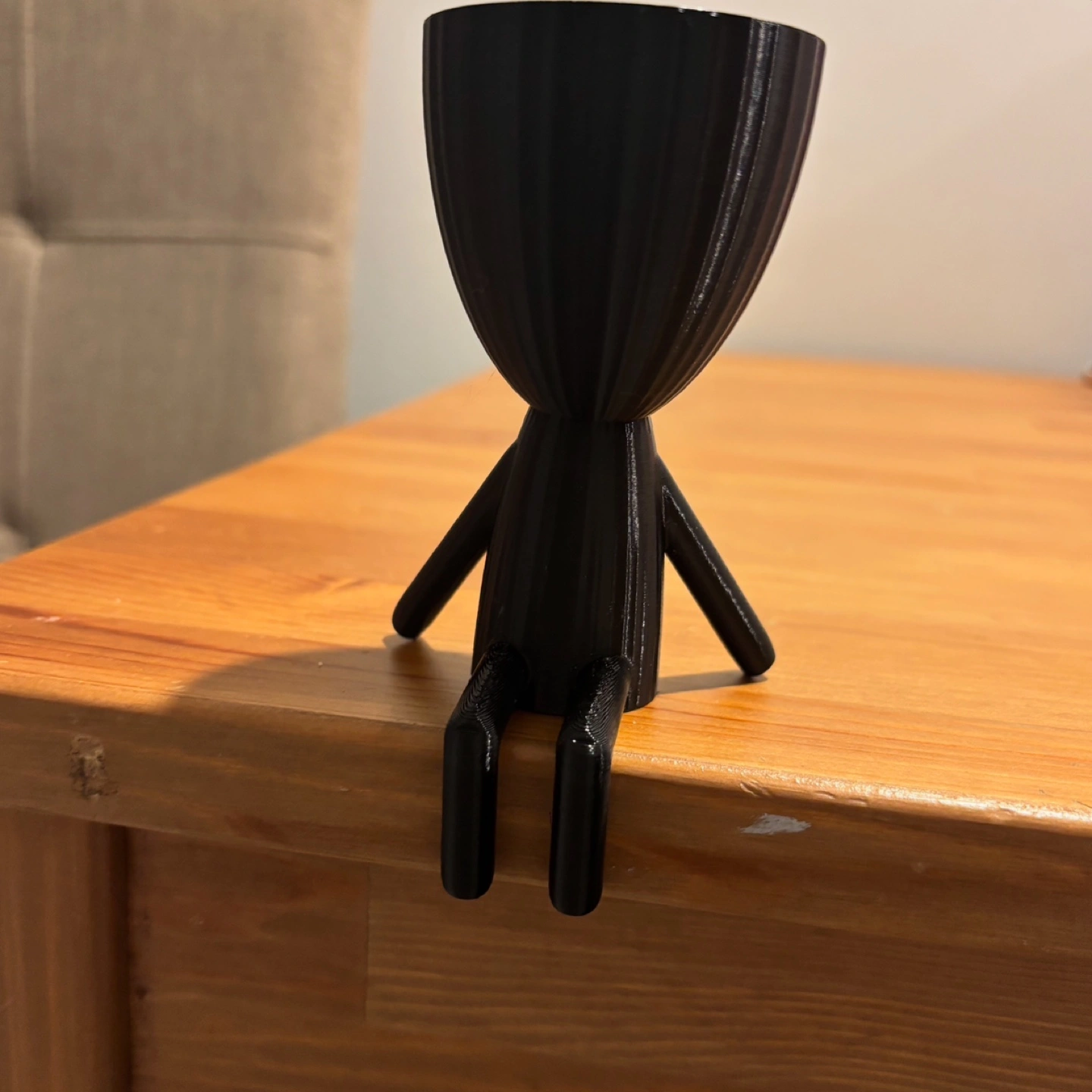 Unique black figurine planter. Small size, 3D printed design. Great for small succulents or decorative use.